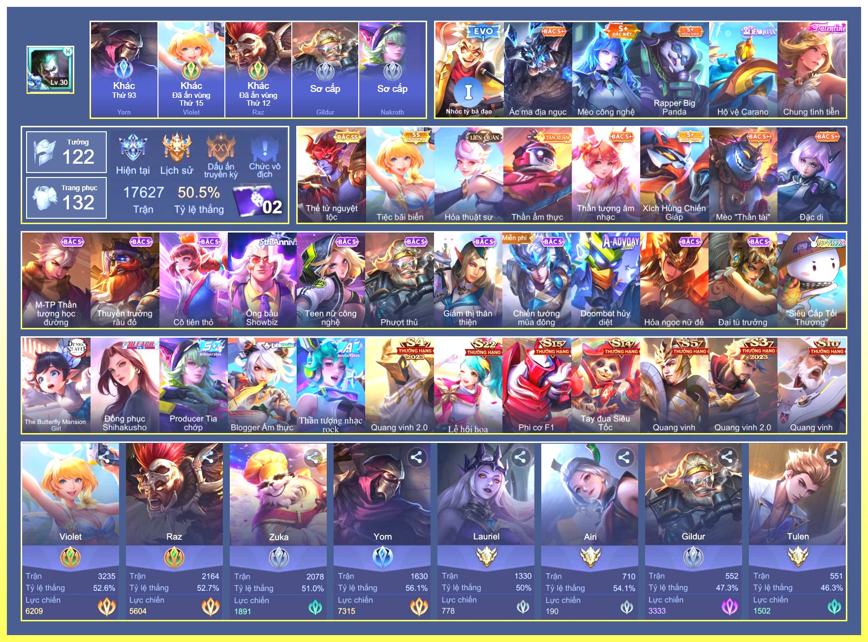 Nổi bật: Rất Nhiều Skin Đẹp Vip.Ngọc 90.Laville Xạ Thần Tinh Vệ.Nak Siêu Việt.Butterfly Bình Minh Tận Thế.Veres Tiệc Bãi Biển.Natalya Băng Tâm Thần Nữ.Slimz Siêu Cấp Tối Thượng.Nak Producer Tia Chớp....