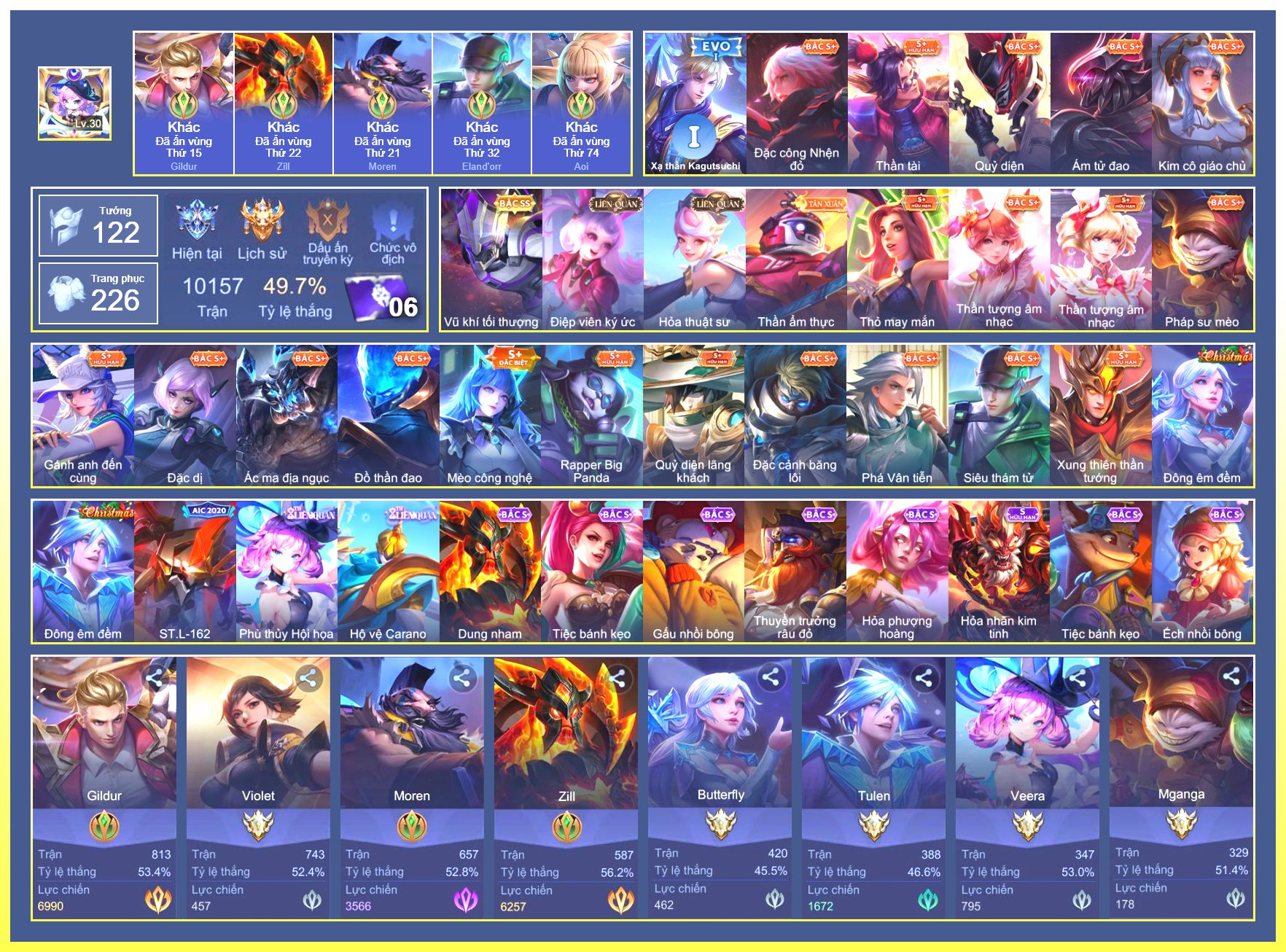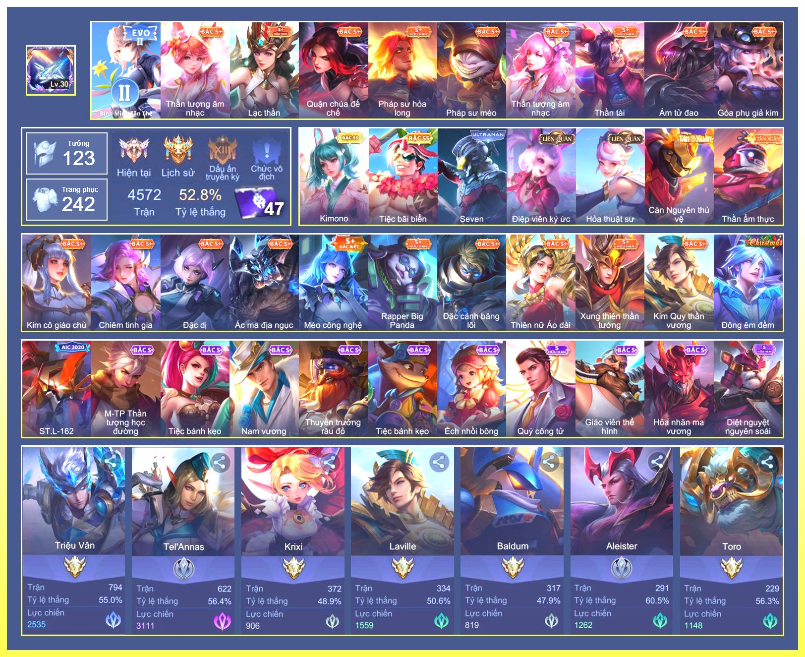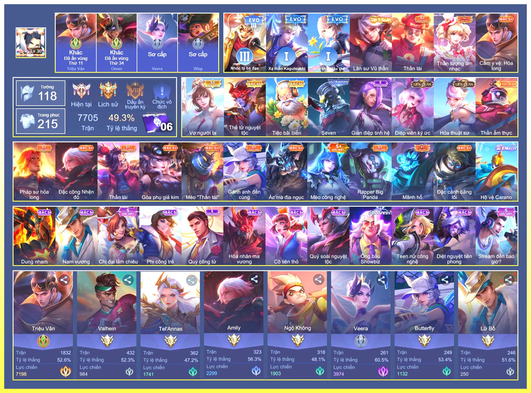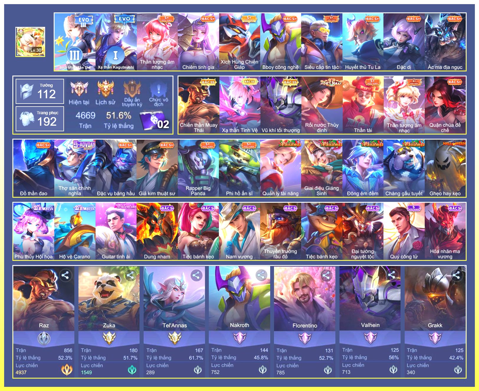 Nổi bật: Rất Nhiều Skin Đẹp Vip.Ngọc 90.Violet Tiệc Bãi Biển.Liliana Nguyệt Mị Ly.Valhein Xạ Thần.Yorn Soái Ca Học Đường.Zephys Inosuke Hashibira....