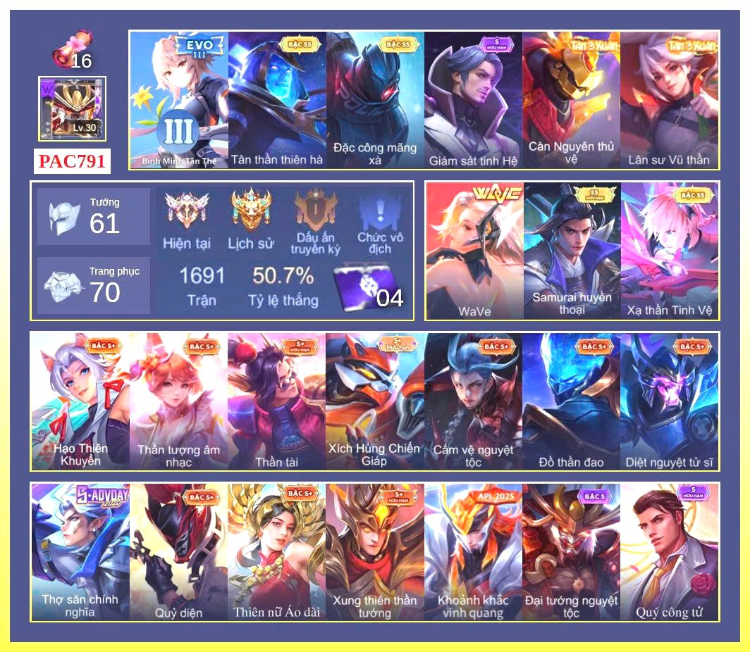 Rất Nhiều Skin Đẹp VIP.Ngọc 90.Dư 1...