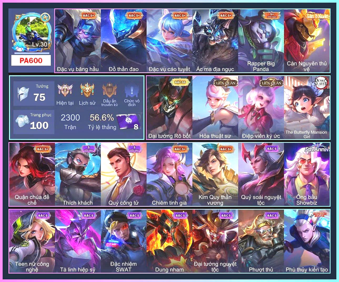 Rất Nhiều Skin Đẹp VIP.Ngọc 90.Dư 1...