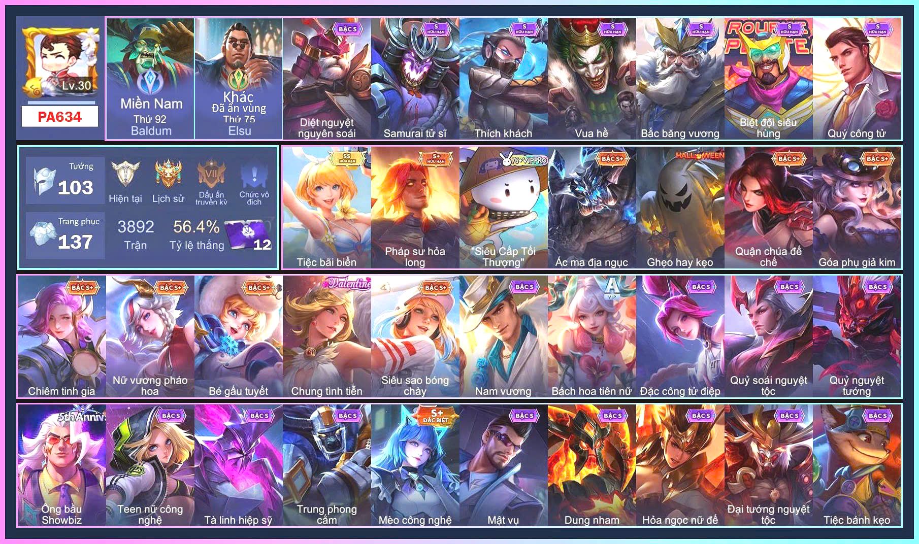 Rất Nhiều Skin Đẹp VIP.Ngọc 90.Dư 1...