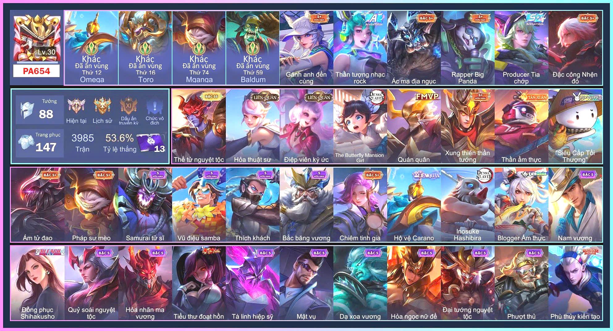 Rất Nhiều Skin Đẹp VIP.Ngọc 90.Dư 1...
