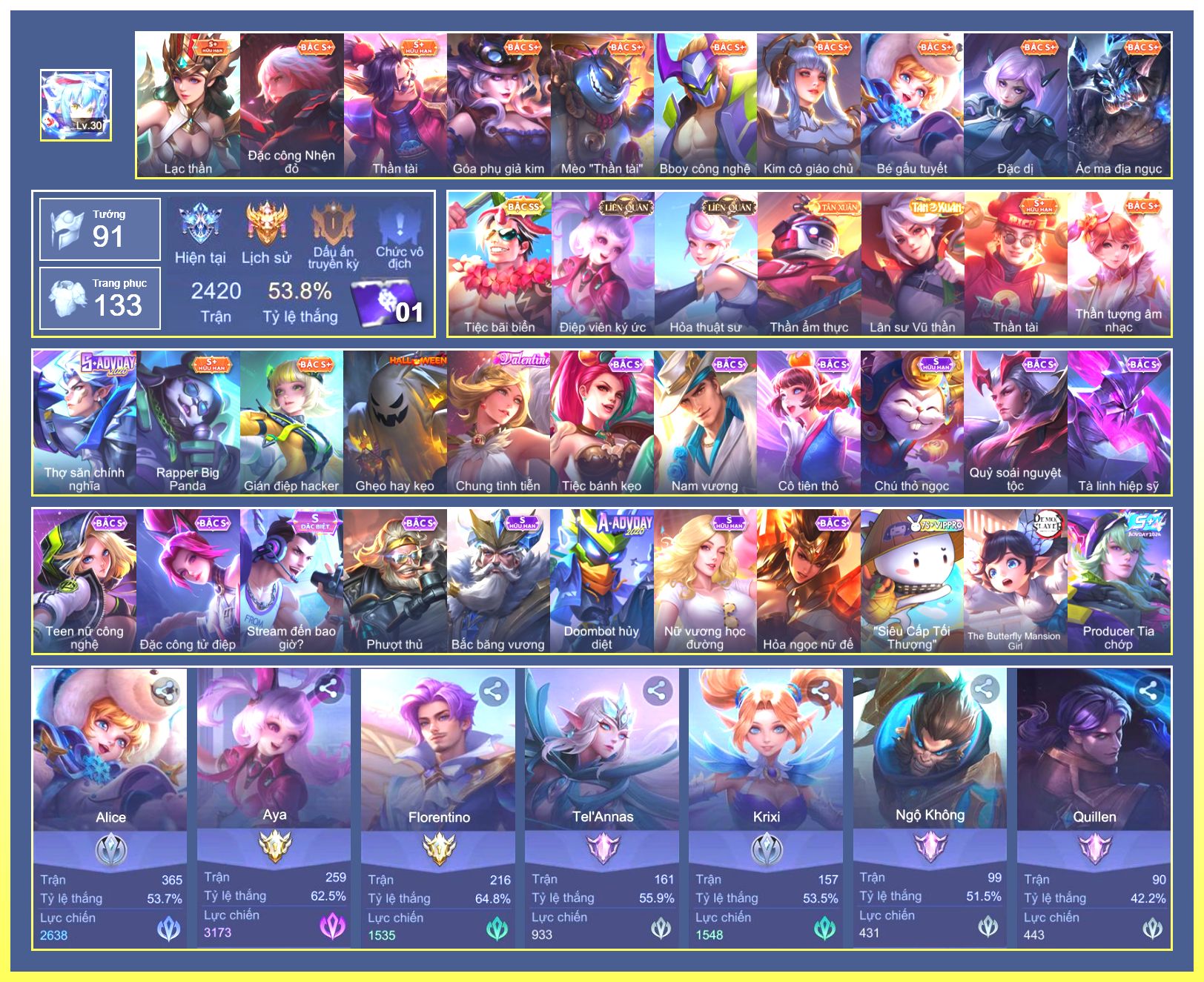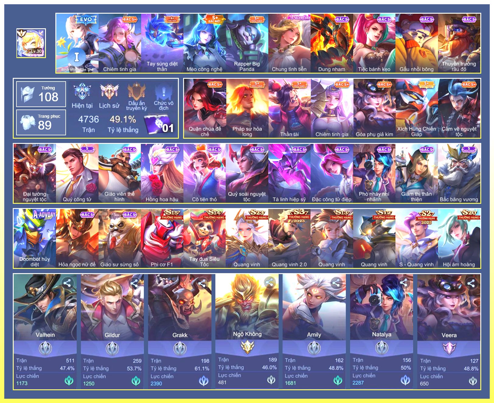 Rất Nhiều Skin Đẹp Vip.Ngọc 90.Dư 7...