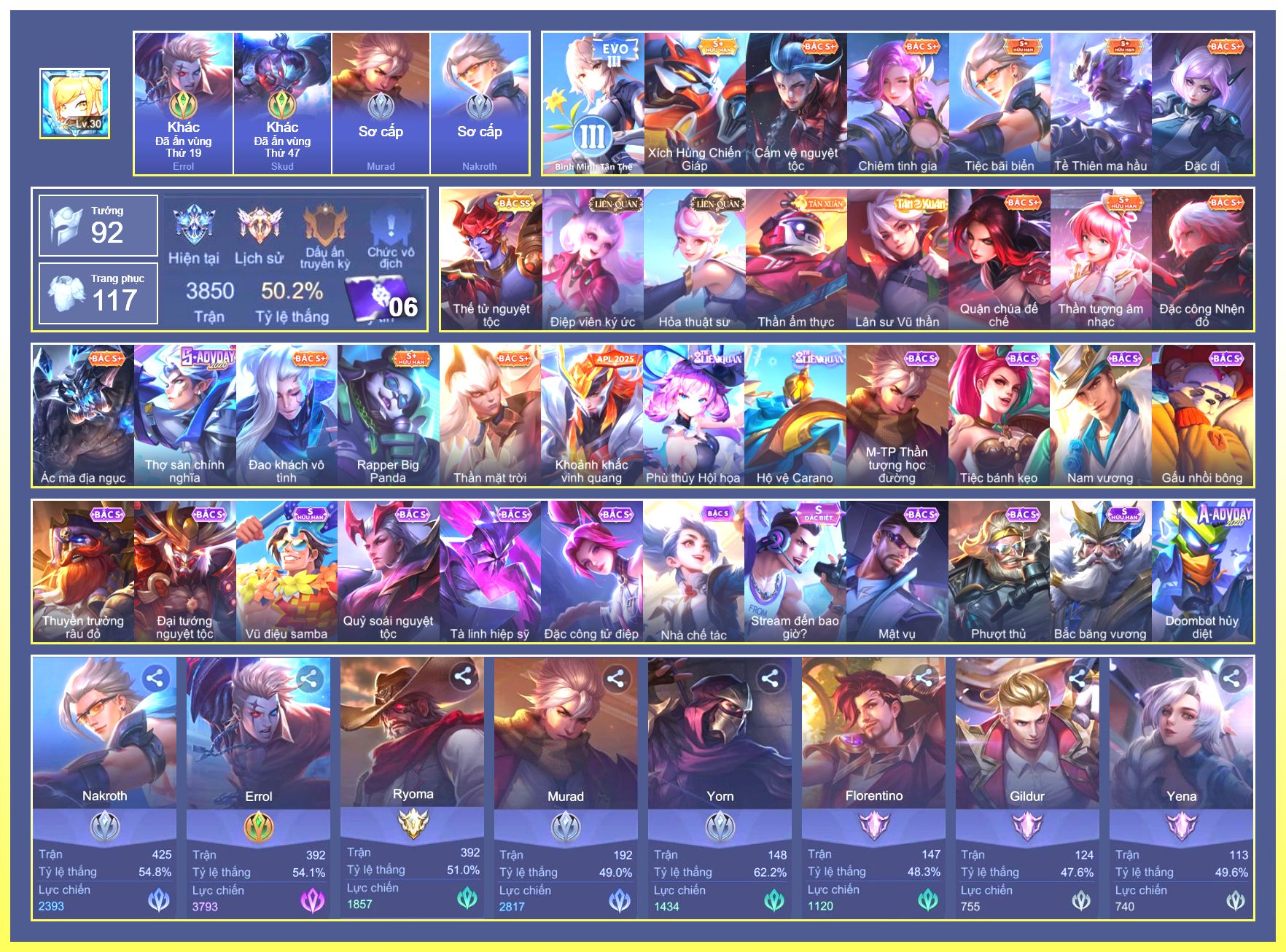 Rất Nhiều Skin Đẹp Vip.Ngọc 90.Dư 5...