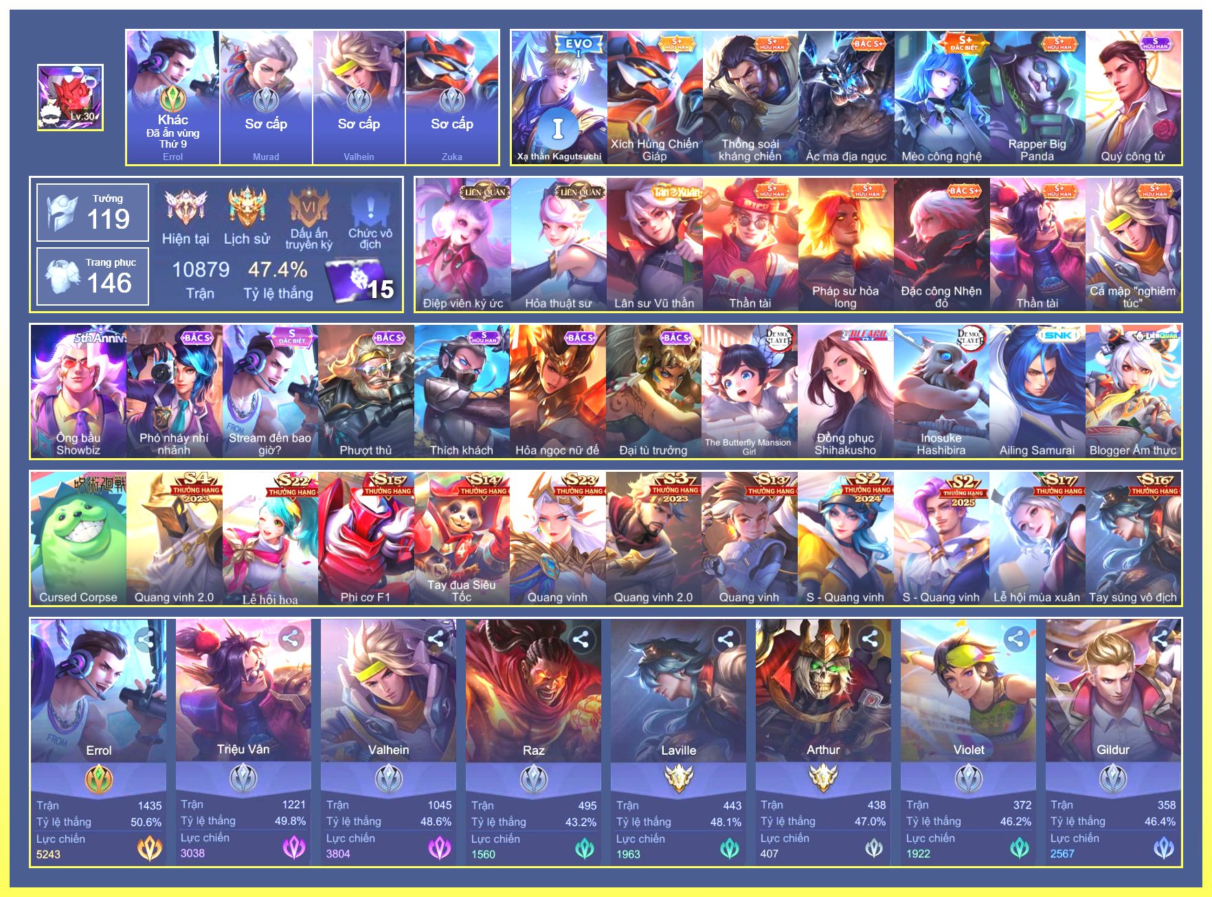 Rất Nhiều Skin Đẹp Vip.Ngọc 90.Dư 4...