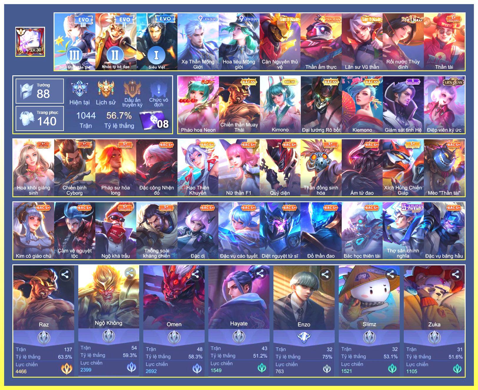 Rất Nhiều Skin Đẹp Vip.Ngọc 90.Dư 3...