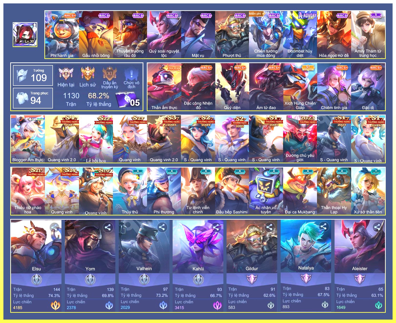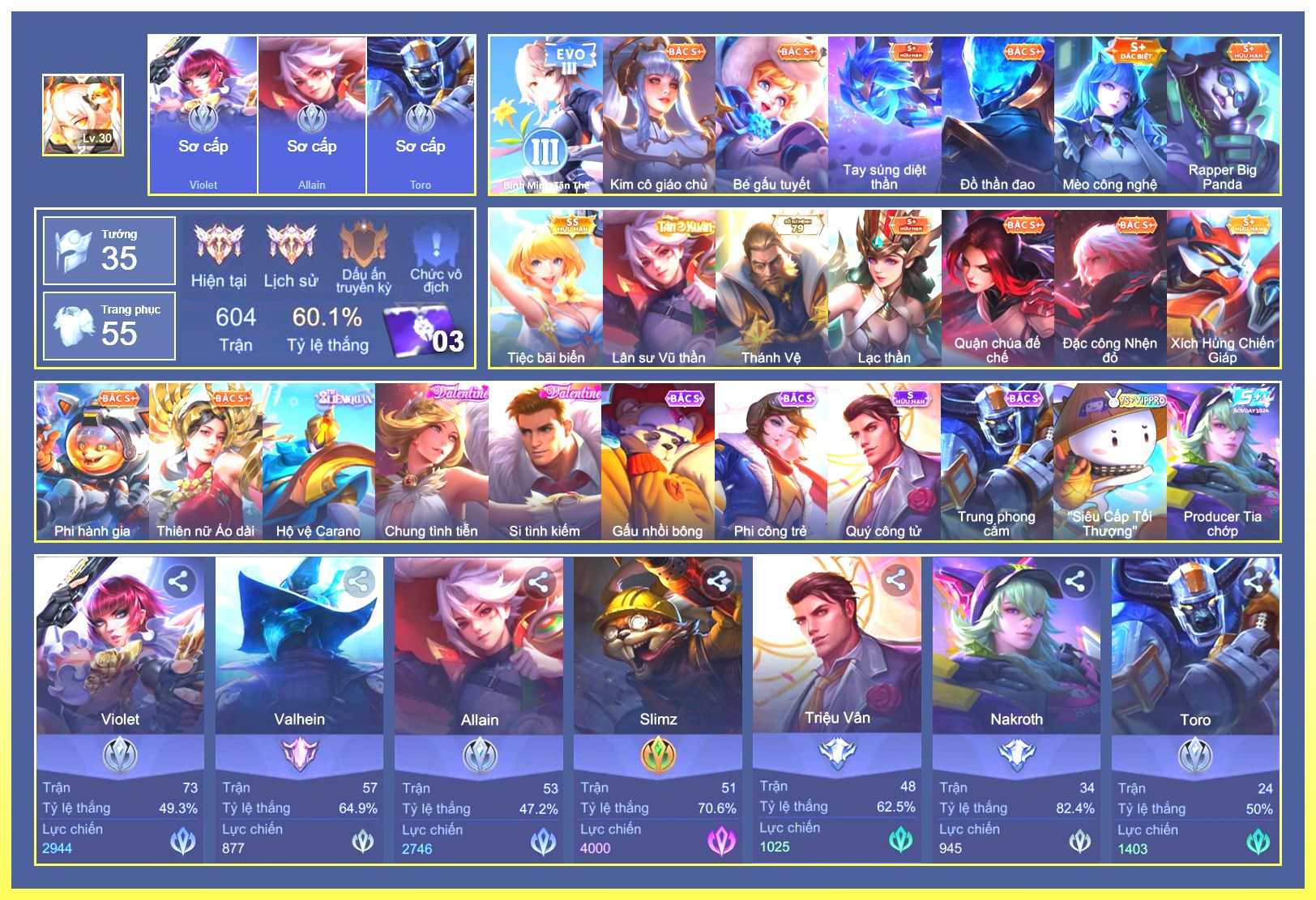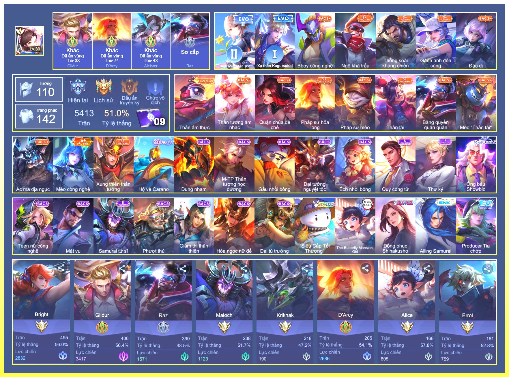 Rất Nhiều Skin Đẹp Vip.Ngọc 90.Dư 6...