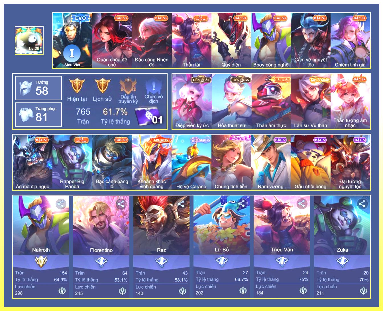Rất Nhiều Skin Đẹp Vip.Ngọc 90.Dư 6...