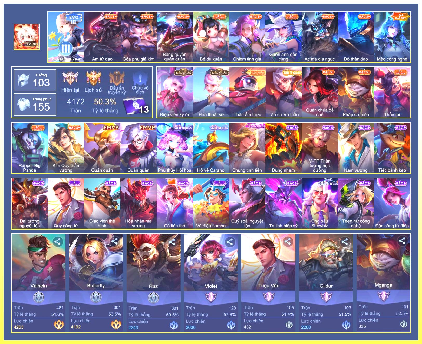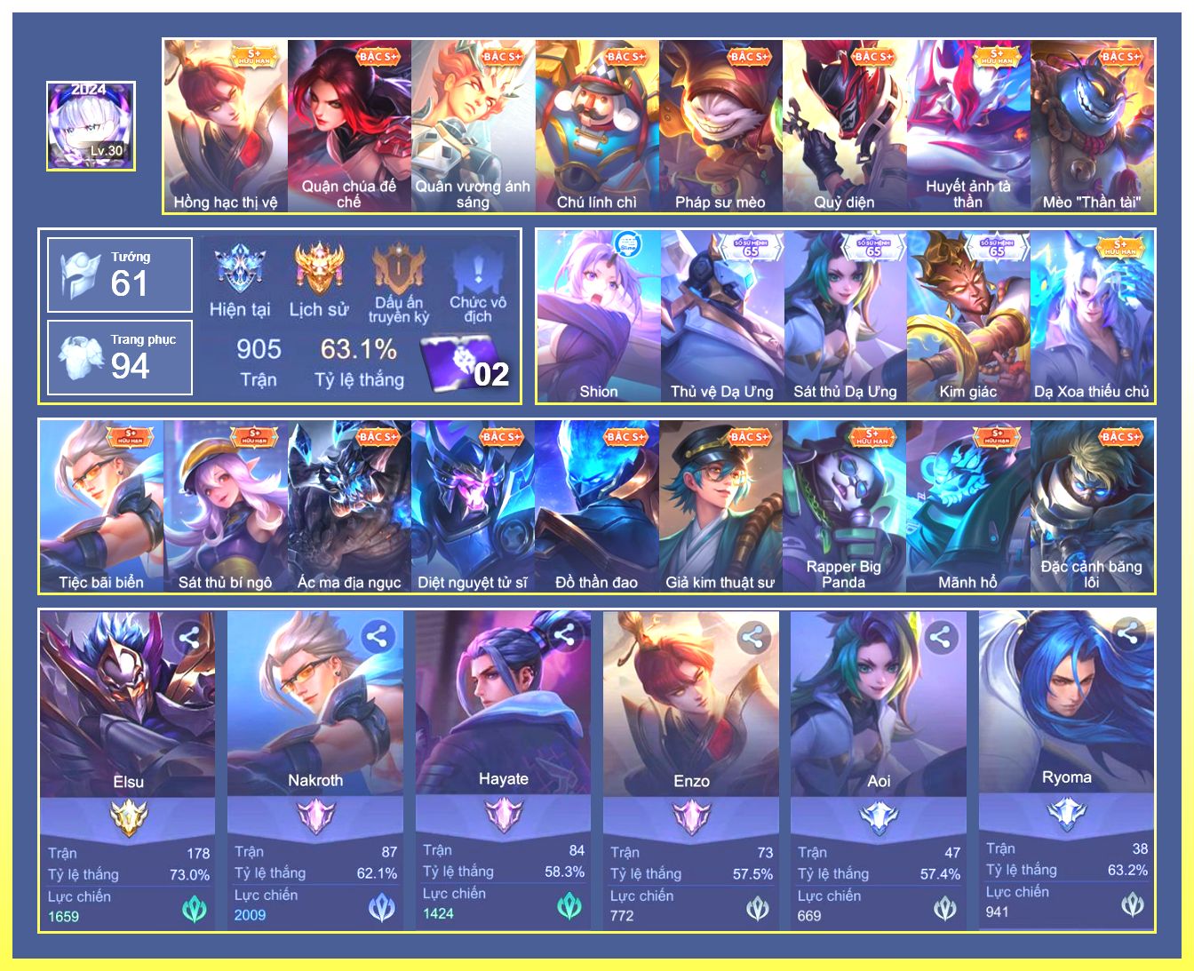 Rất Nhiều Skin Đẹp Vip.Ngọc 90.Dư 5...