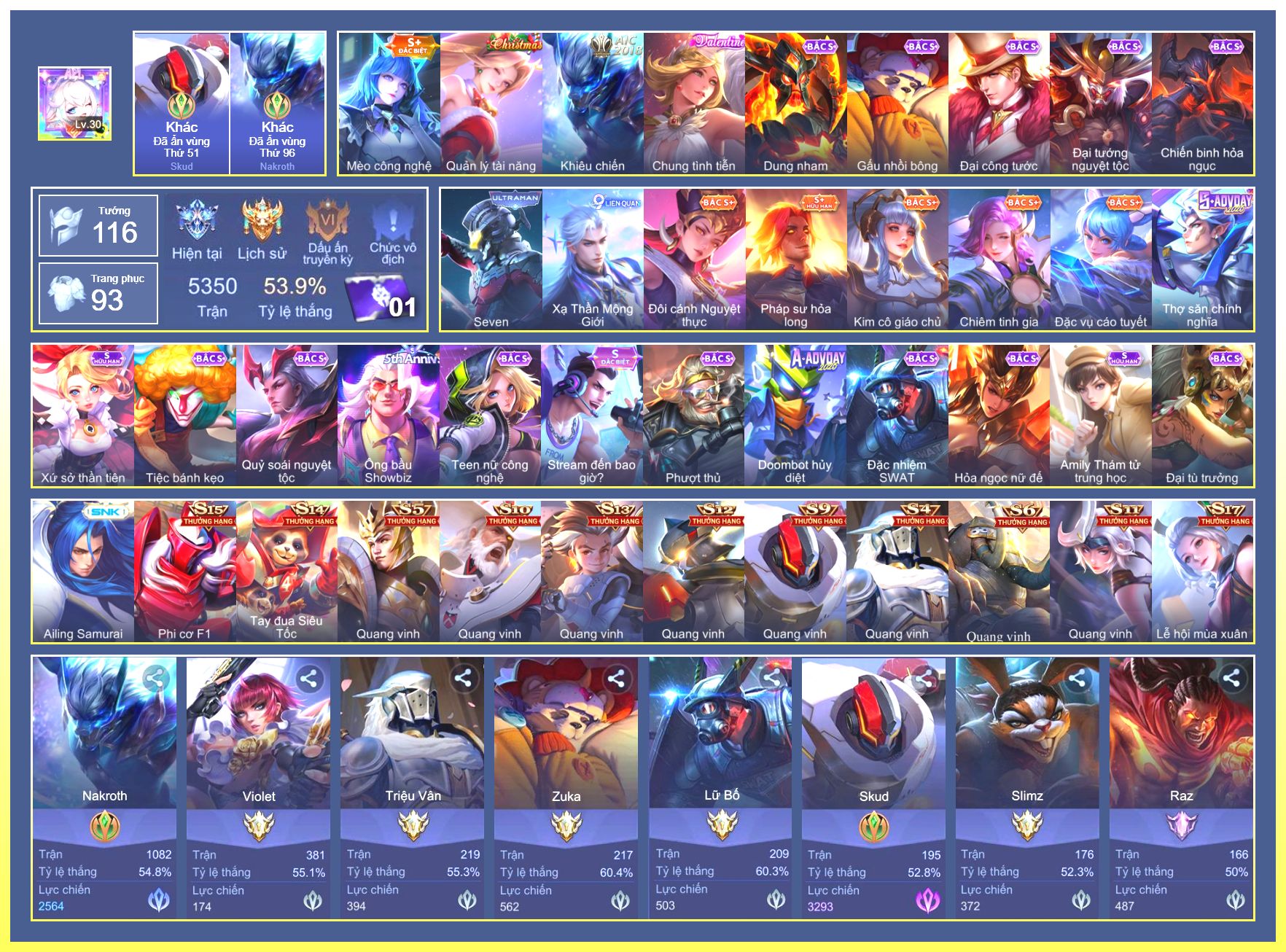 Rất Nhiều Skin Đẹp Vip.Ngọc 90.Dư 3...