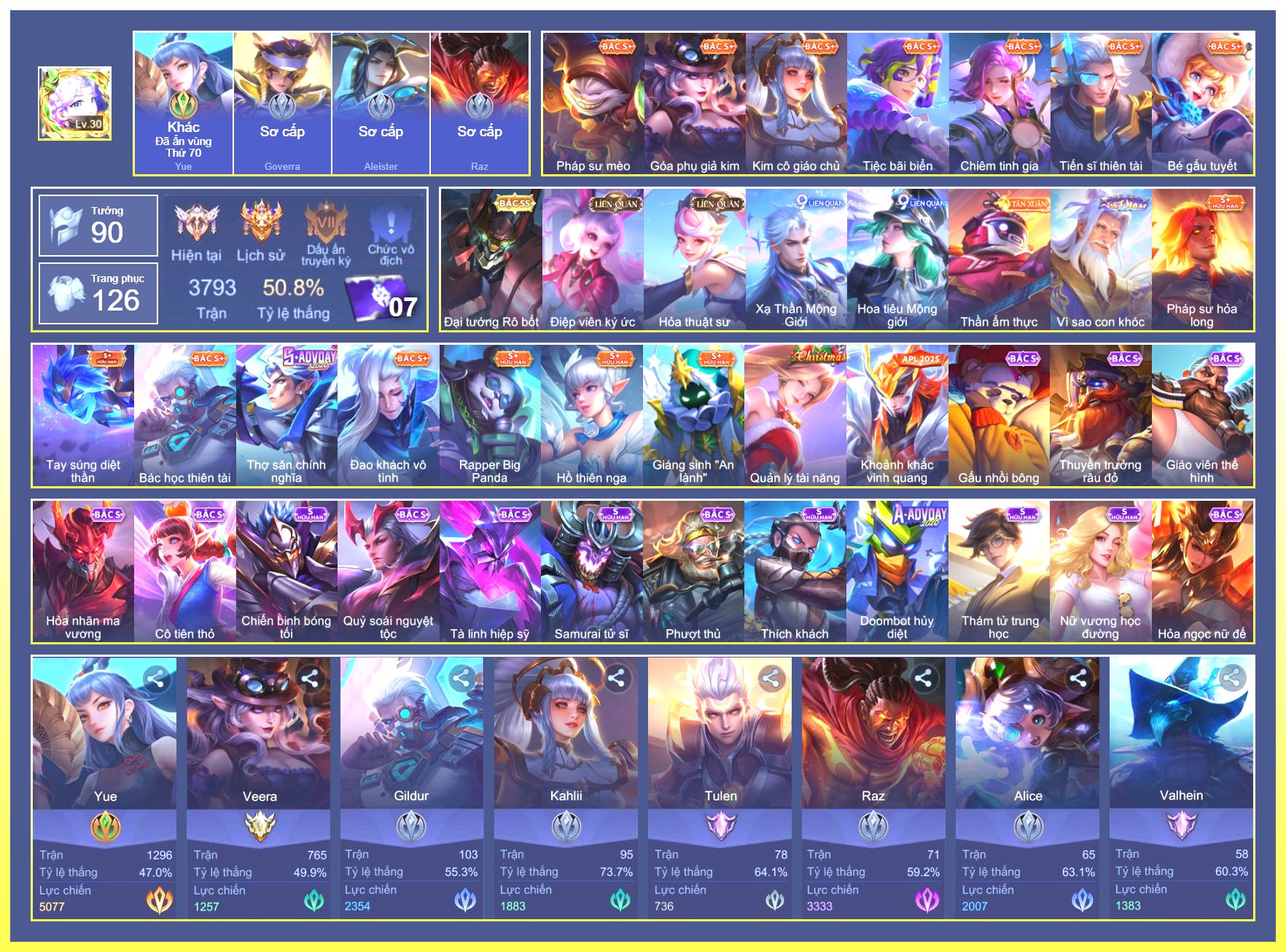 Rất Nhiều Skin Đẹp Vip.Ngọc 90.Dư 7...