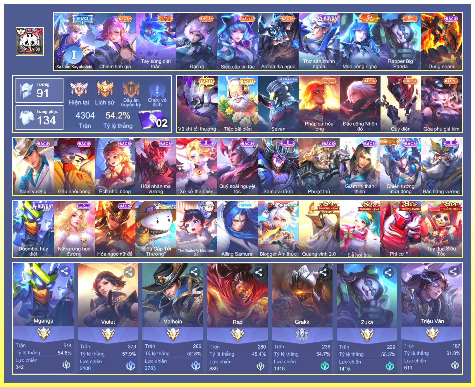 Rất Nhiều Skin Đẹp Vip.Ngọc 90.Dư 6...