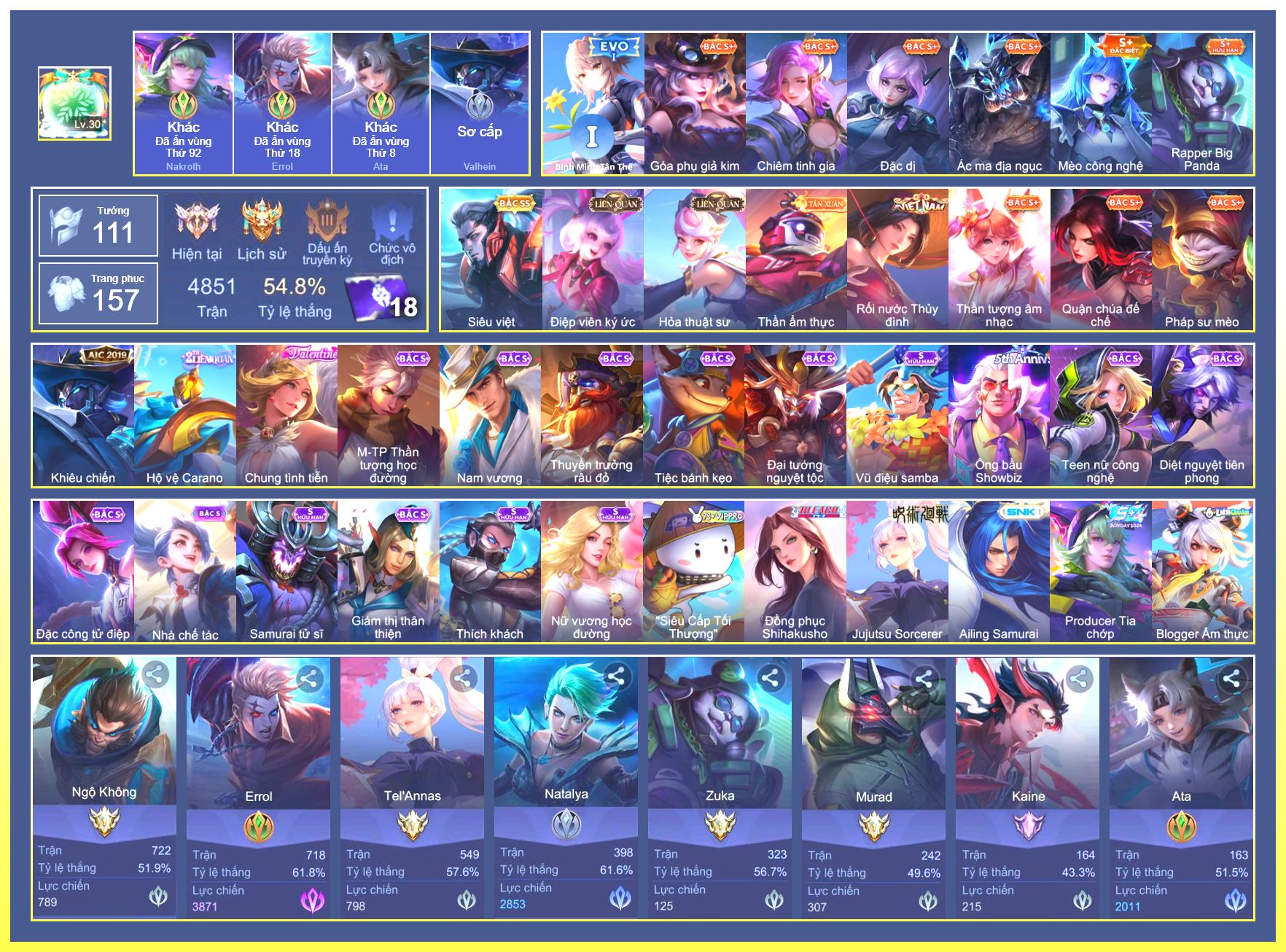 Rất Nhiều Skin Đẹp Vip.Ngọc 90.Dư 6...