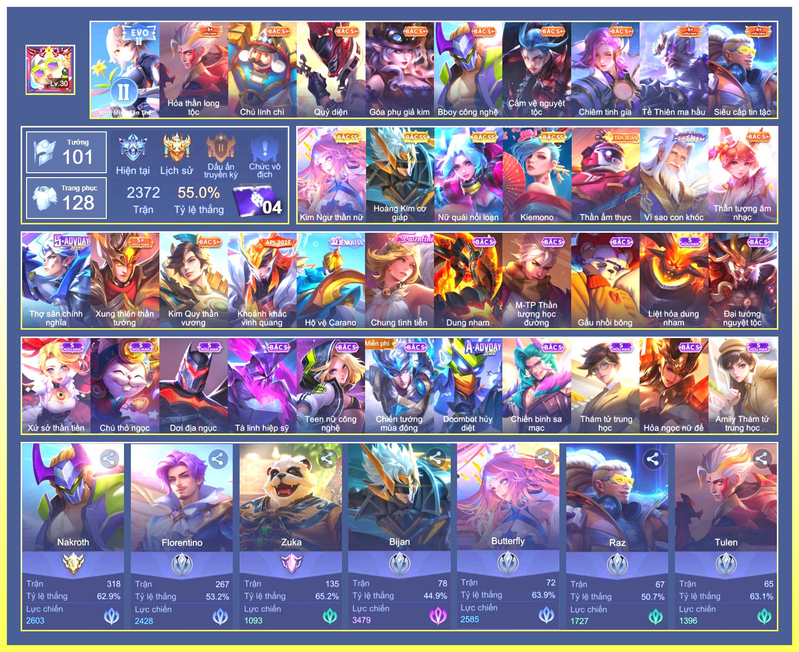 Rất Nhiều Skin Đẹp Vip.Ngọc 90.Bill...