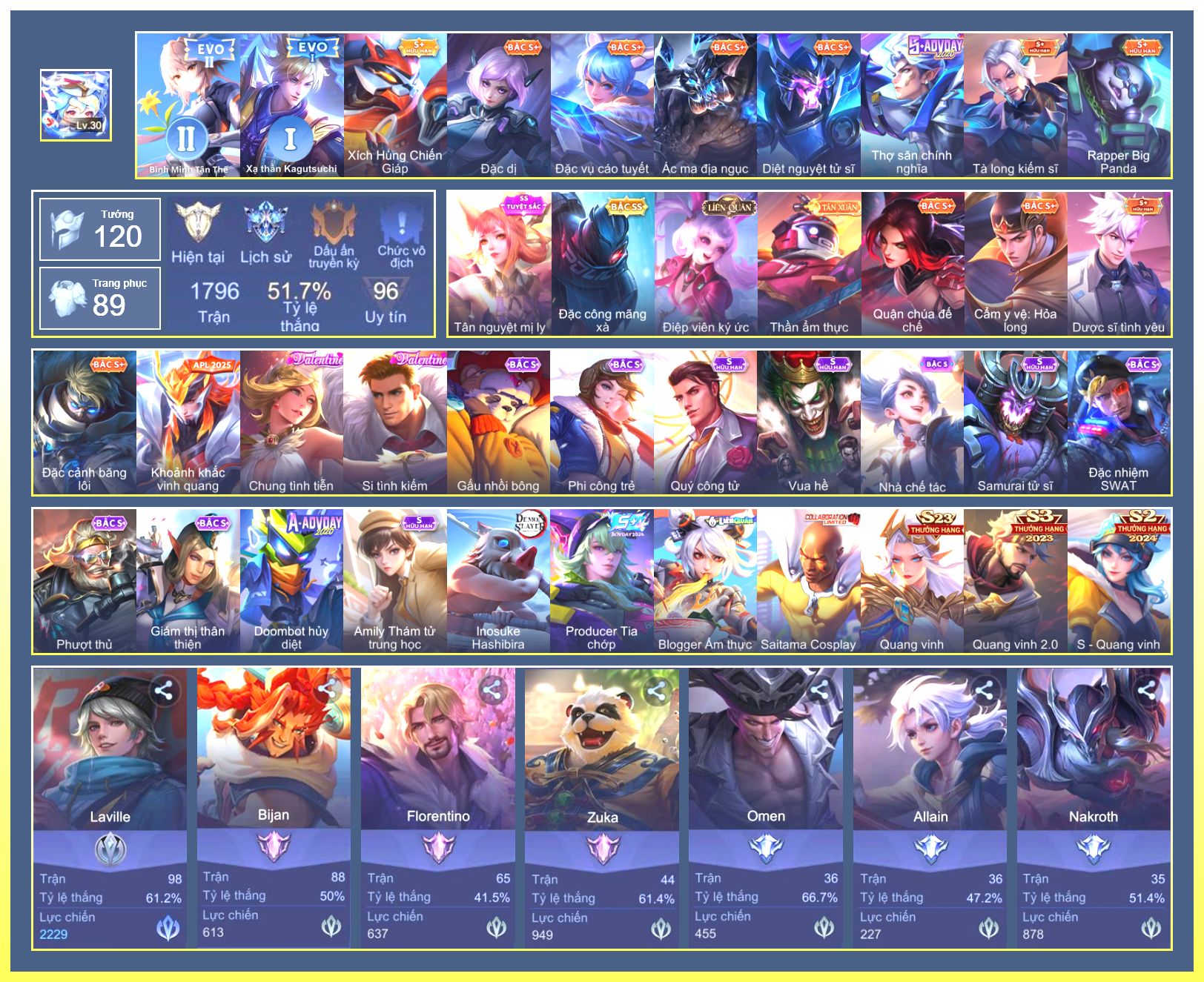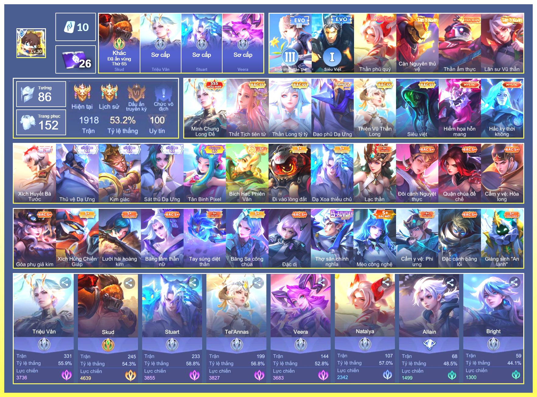 Rất Nhiều Skin Đẹp Vip.Ngọc 90.Dư 4...