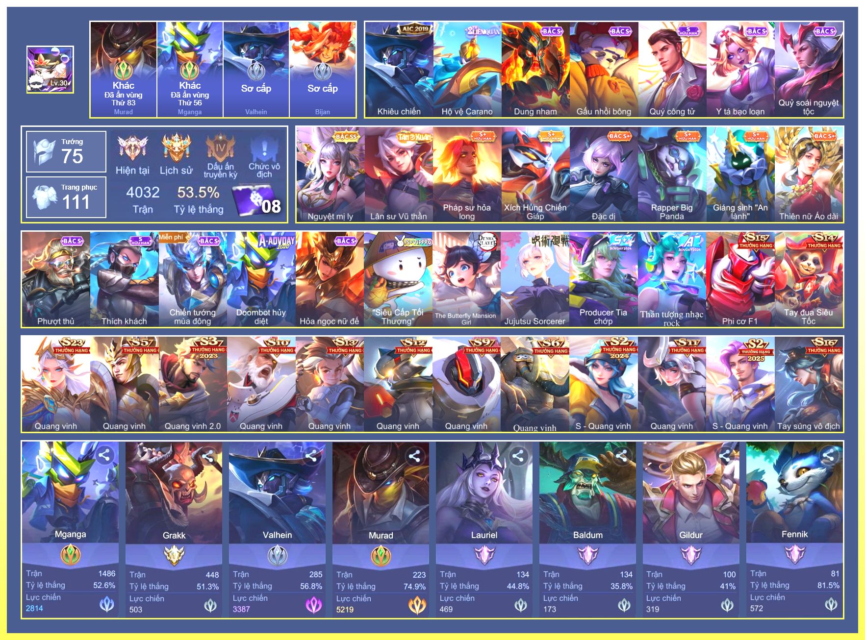 Rất Nhiều Skin Đẹp Vip.Ngọc 90.Dư 4...