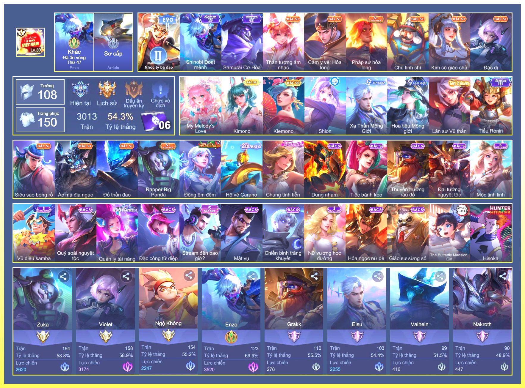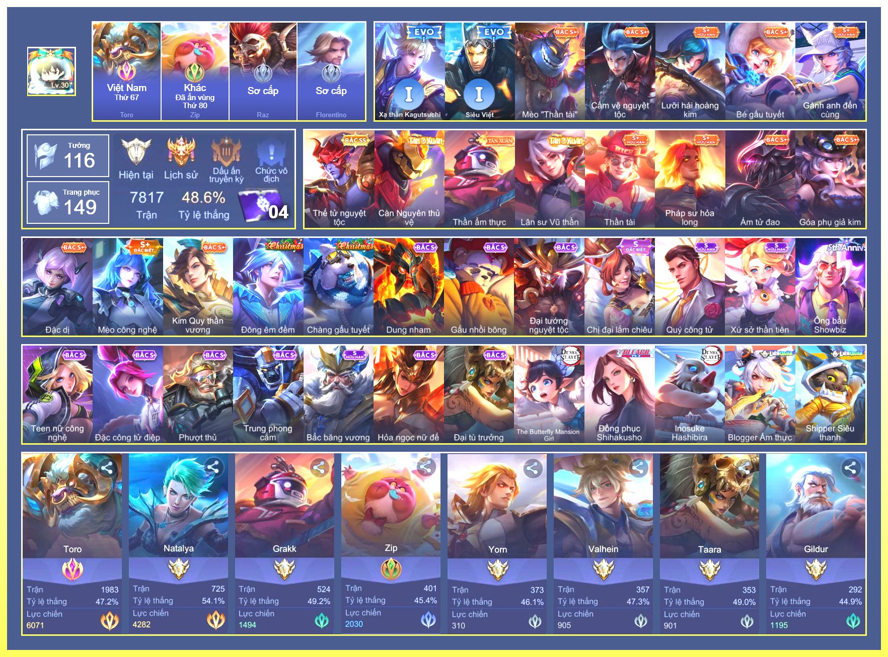 Rất Nhiều Skin Đẹp Vip.Ngọc 90.Dư 6...