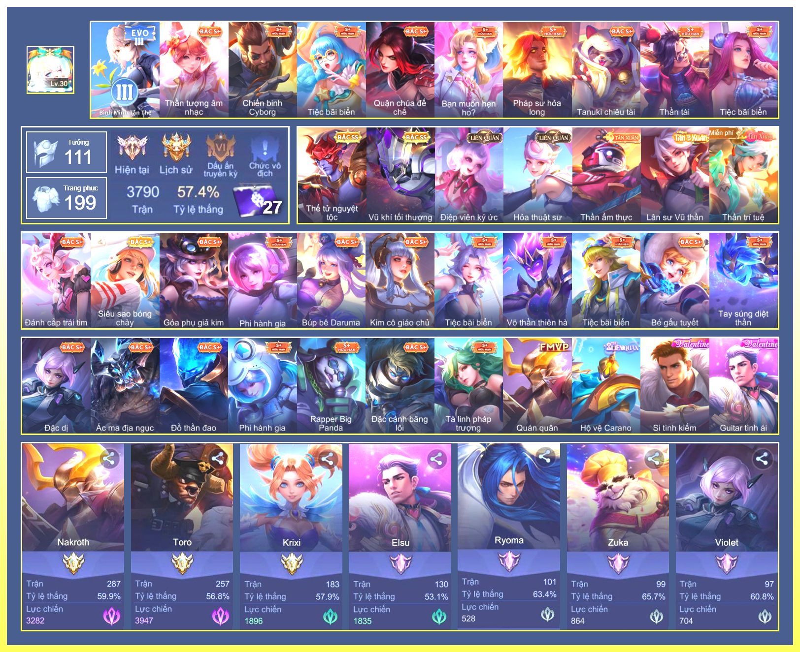 Rất Nhiều Skin Đẹp Vip.Ngọc 90.Dư 4...
