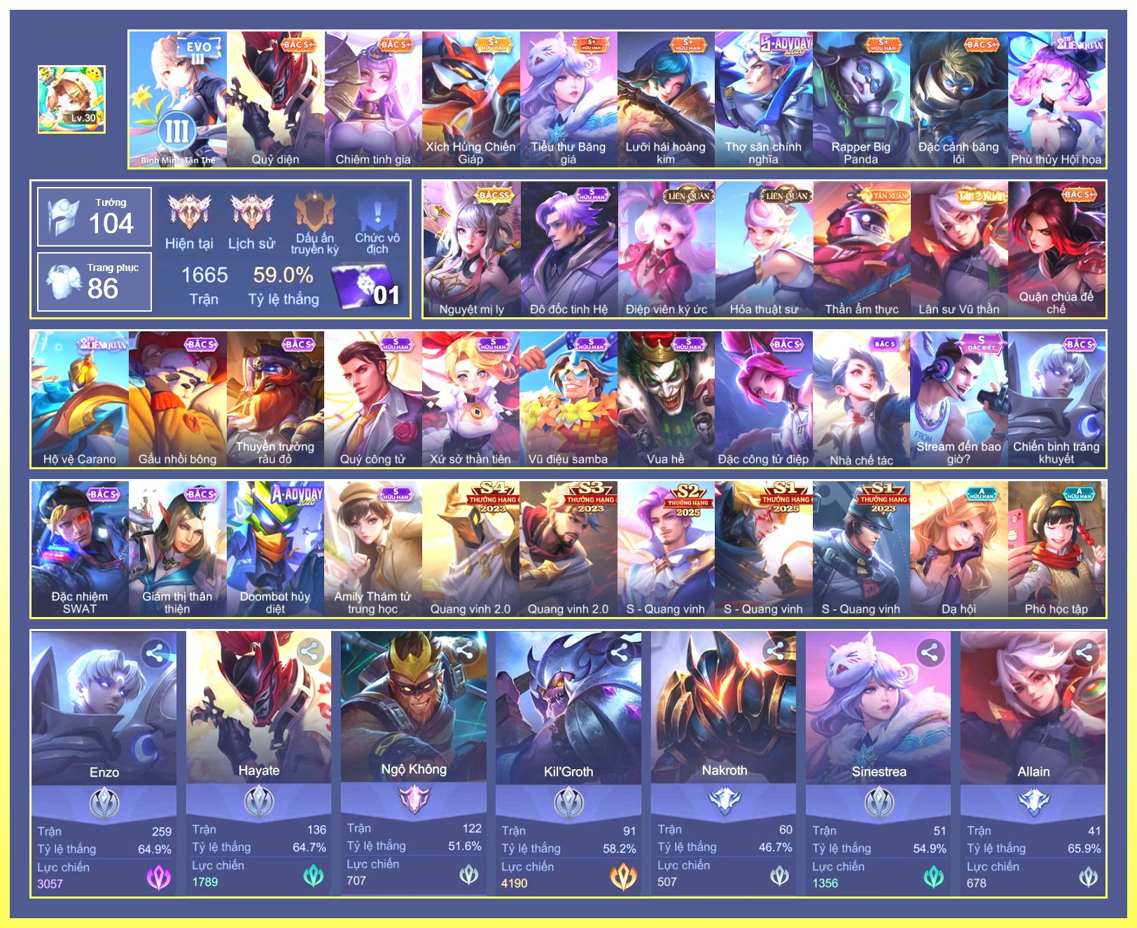Rất Nhiều Skin Đẹp Vip.Ngọc 90.Dư 4...