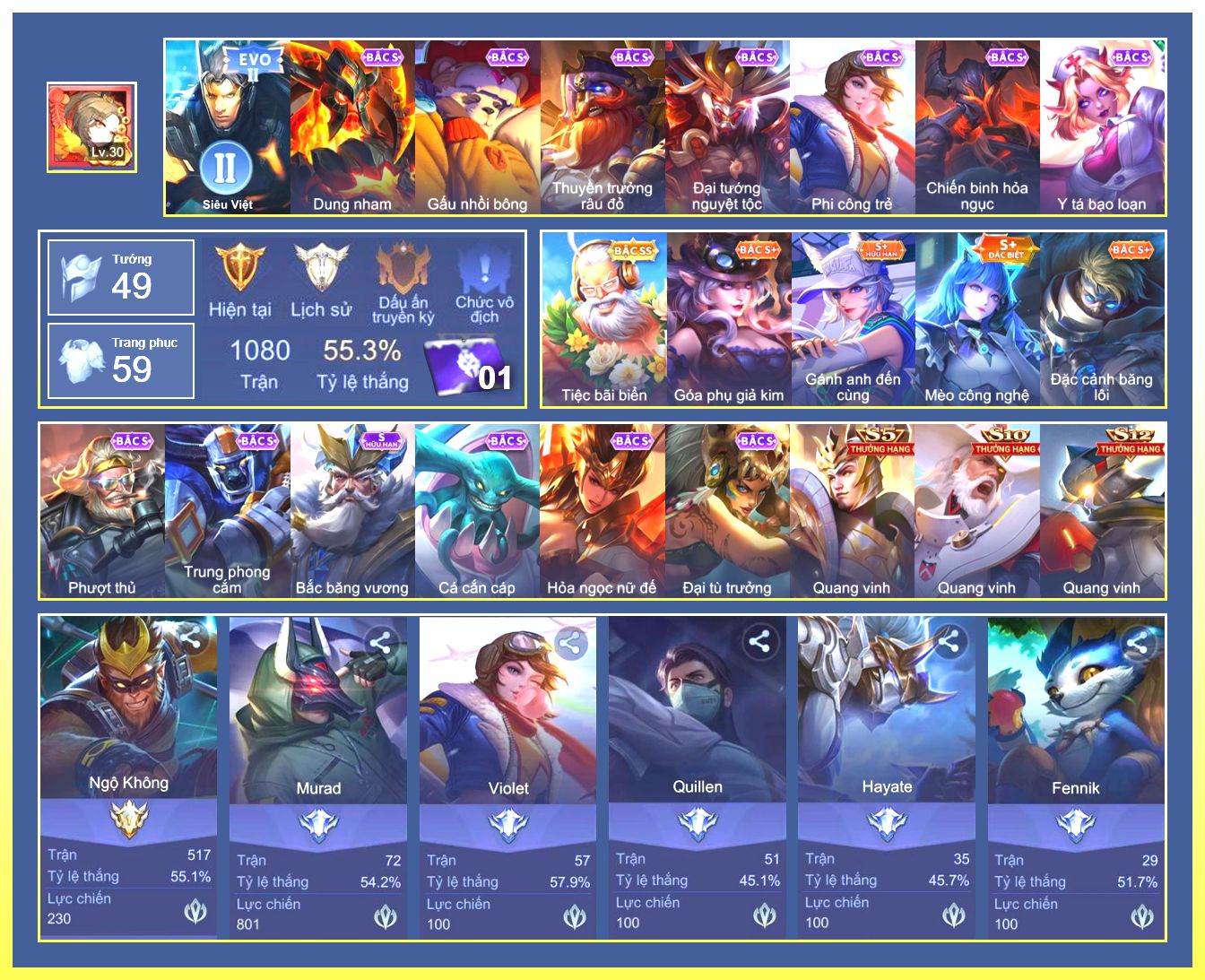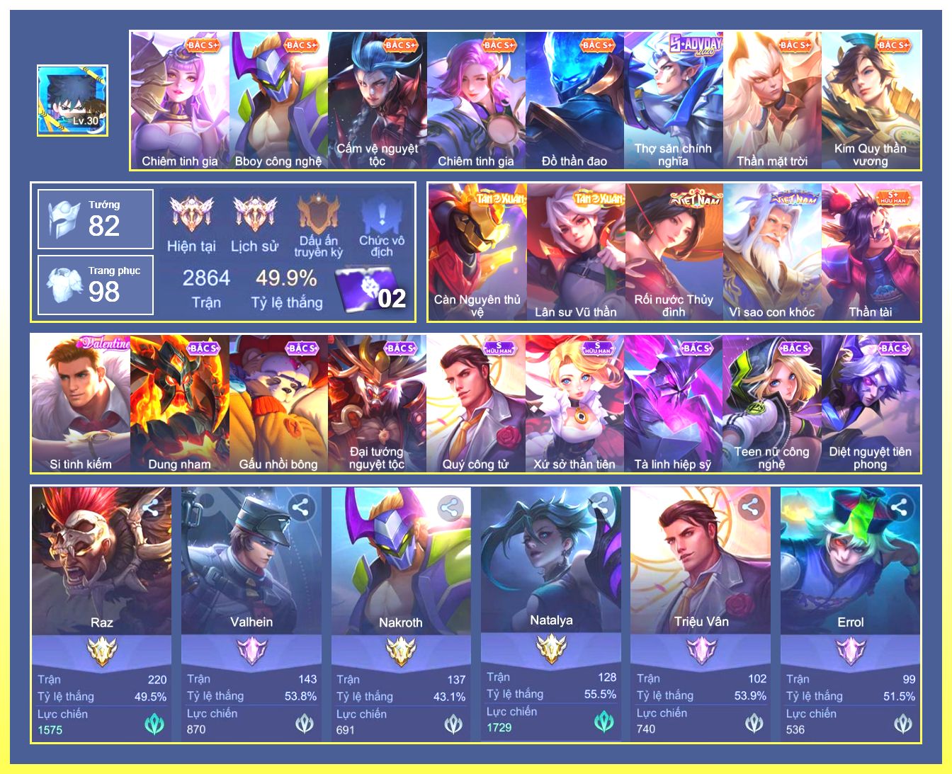 Rất Nhiều Skin Đẹp Vip.Ngọc 90.Dư 7...