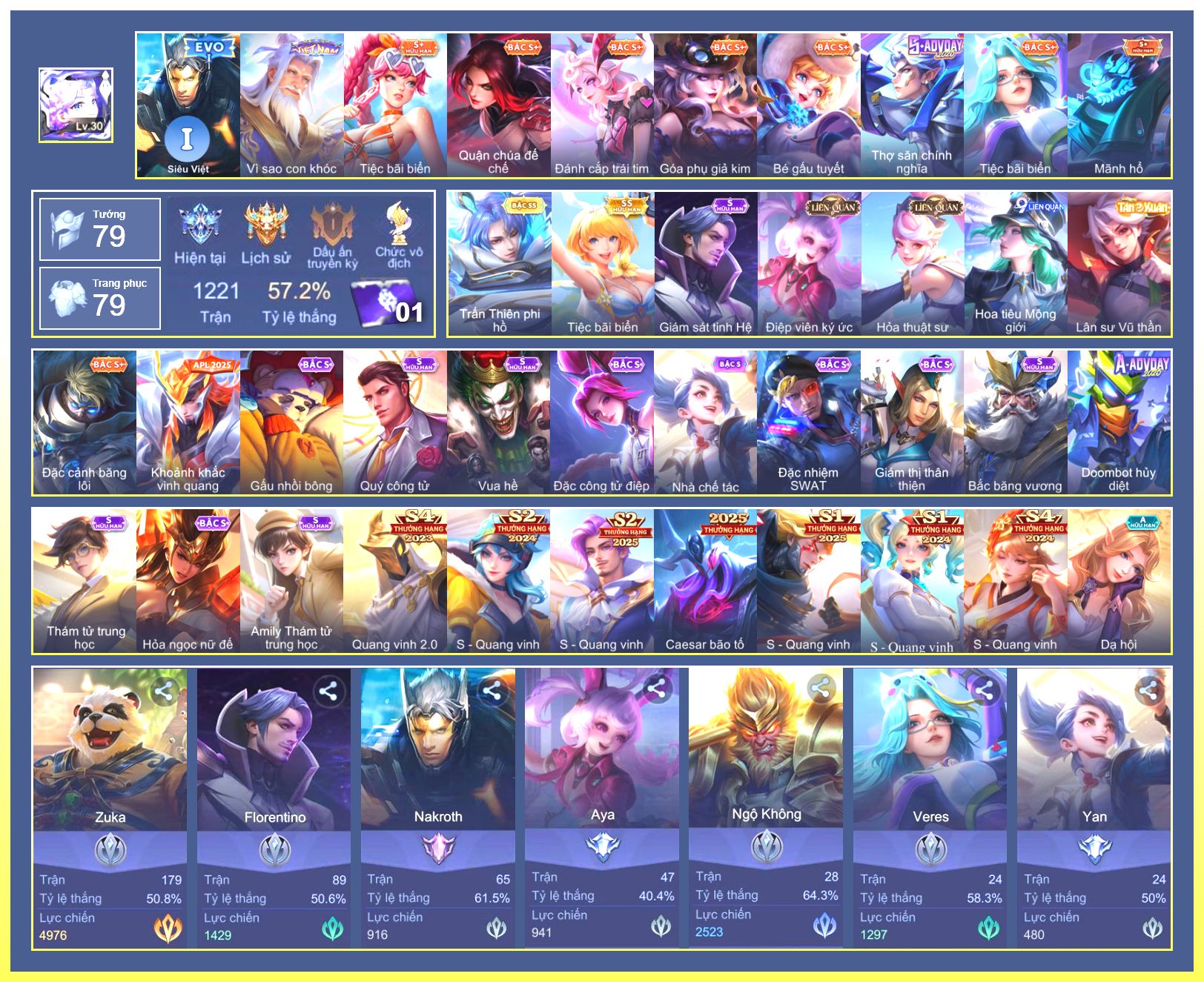 Rất Nhiều Skin Đẹp Vip.Ngọc 90.Bill...