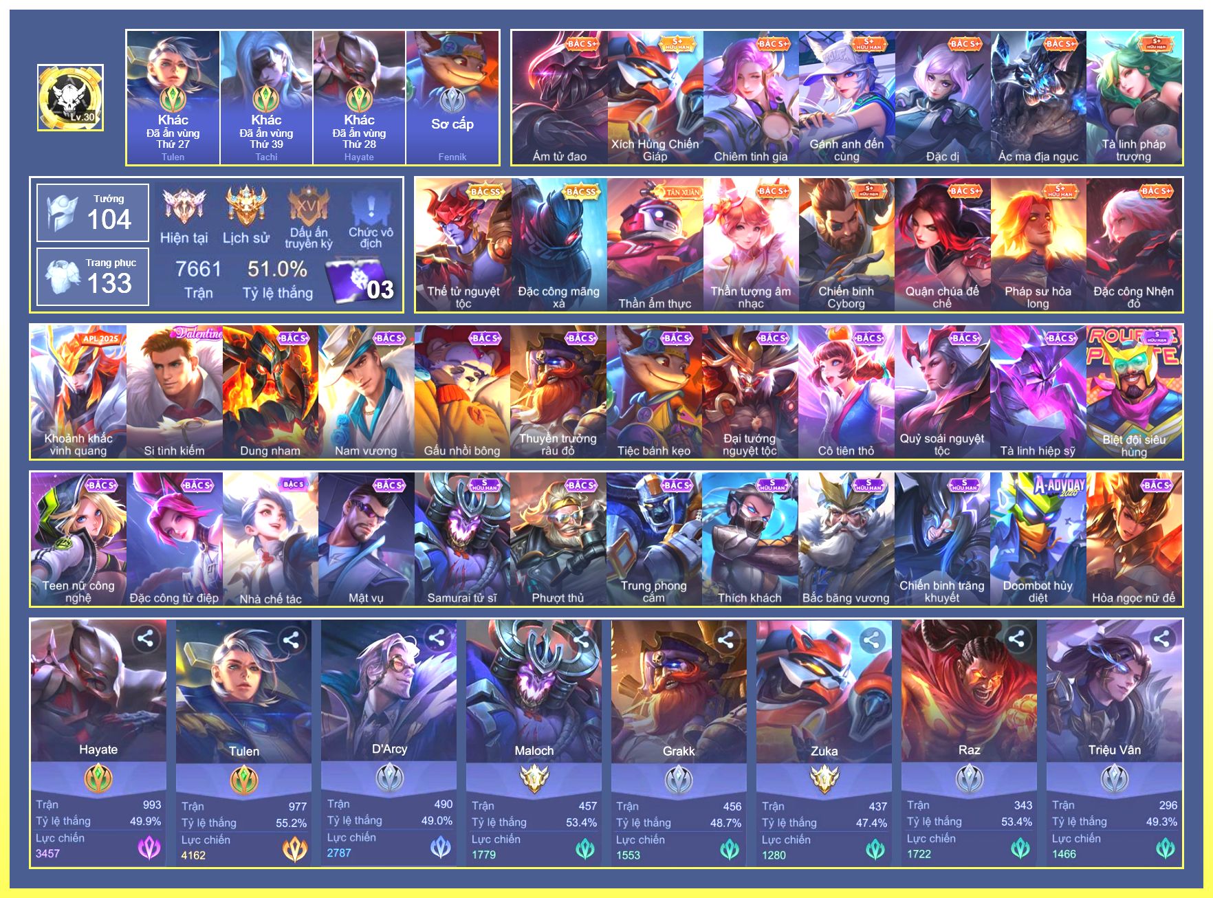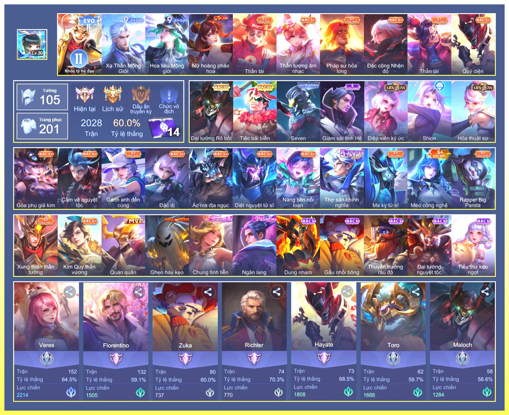 Rất Nhiều Skin Đẹp Vip.Ngọc 90.Malo...