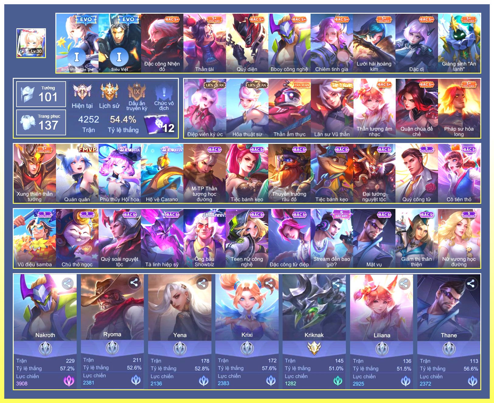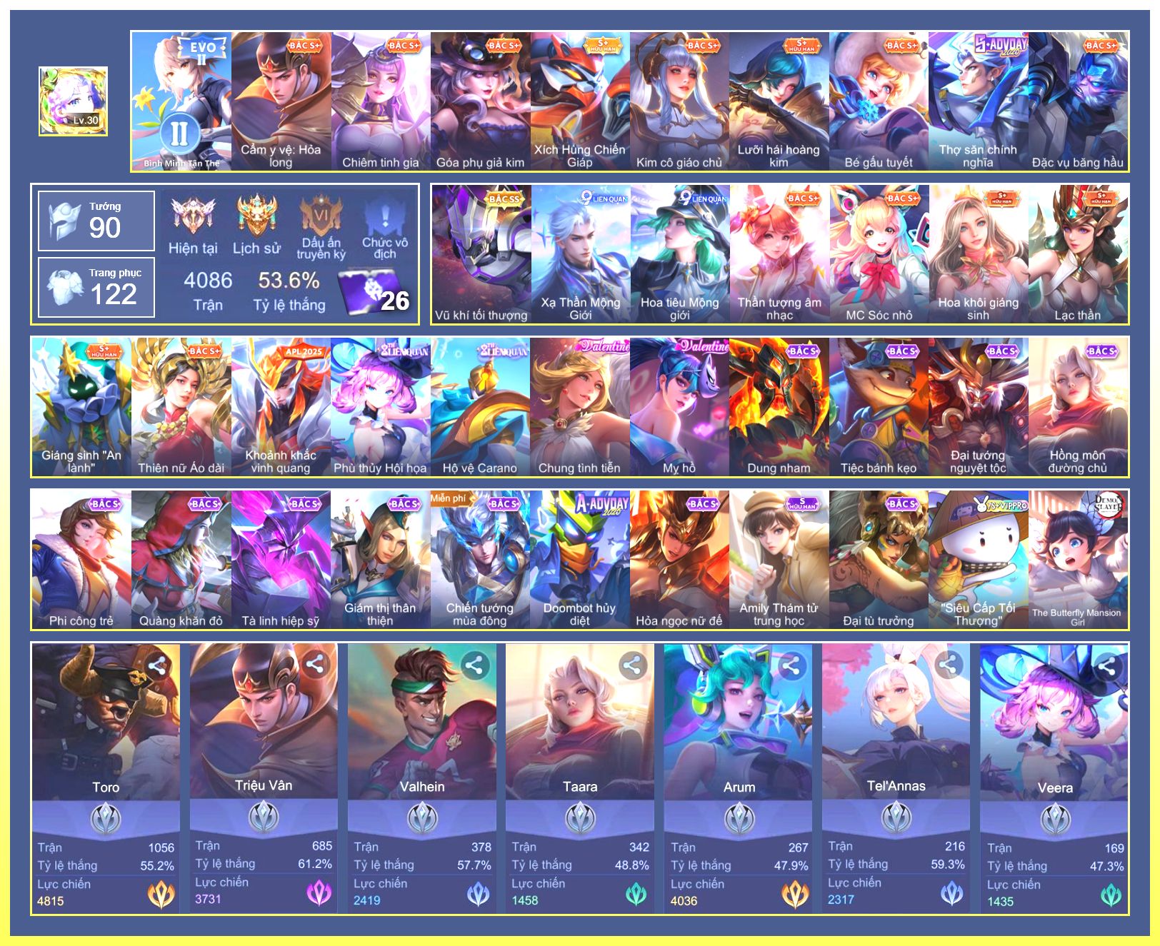 Rất Nhiều Skin Đẹp Vip.Ngọc 90.Dư 4...