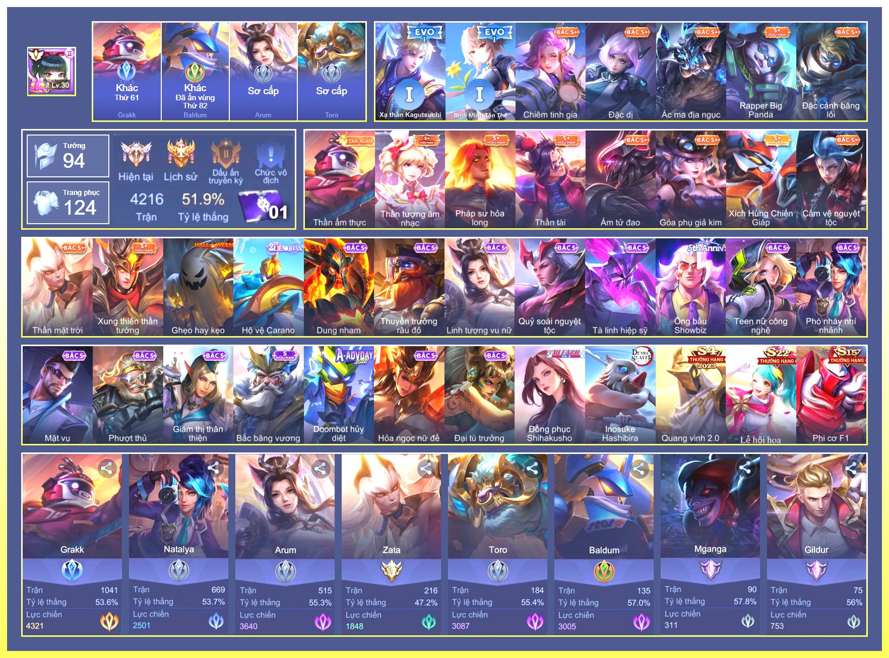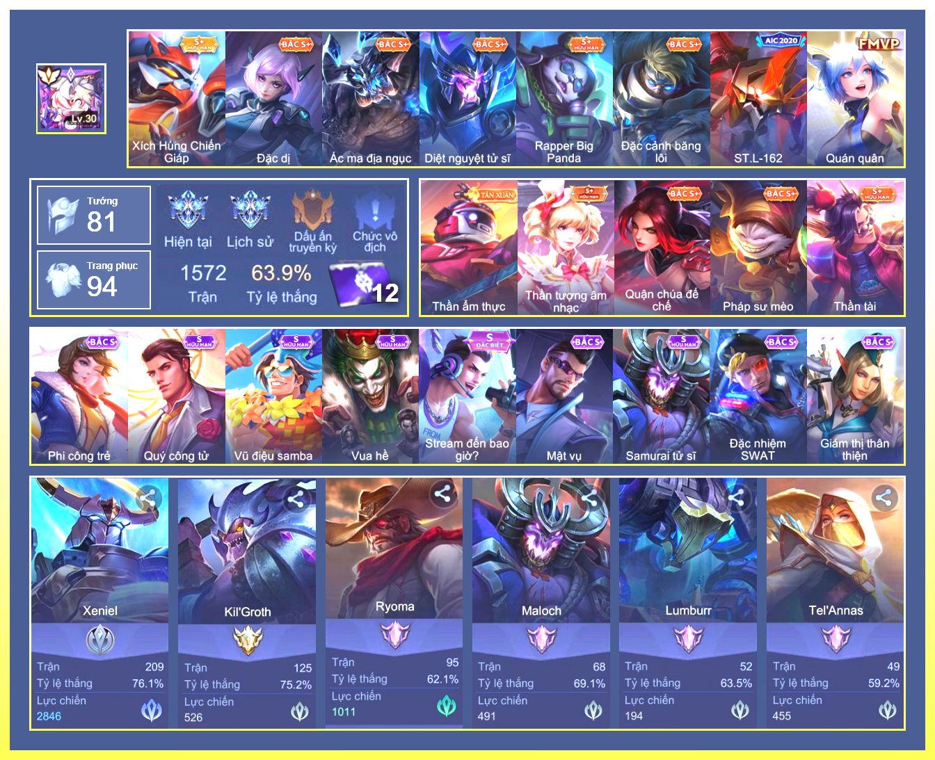 Rất Nhiều Skin Đẹp Vip.Ngọc 90.Dư 6...