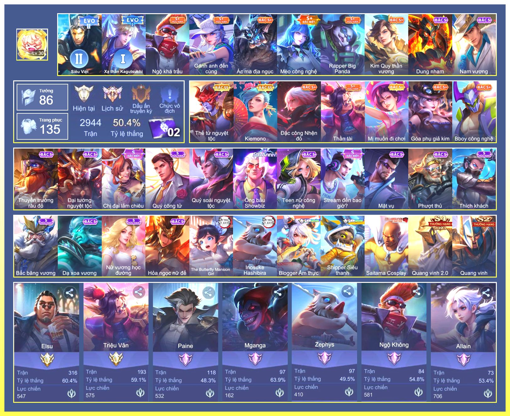 Rất Nhiều Skin Đẹp Vip.Ngọc 90.Dư 6...
