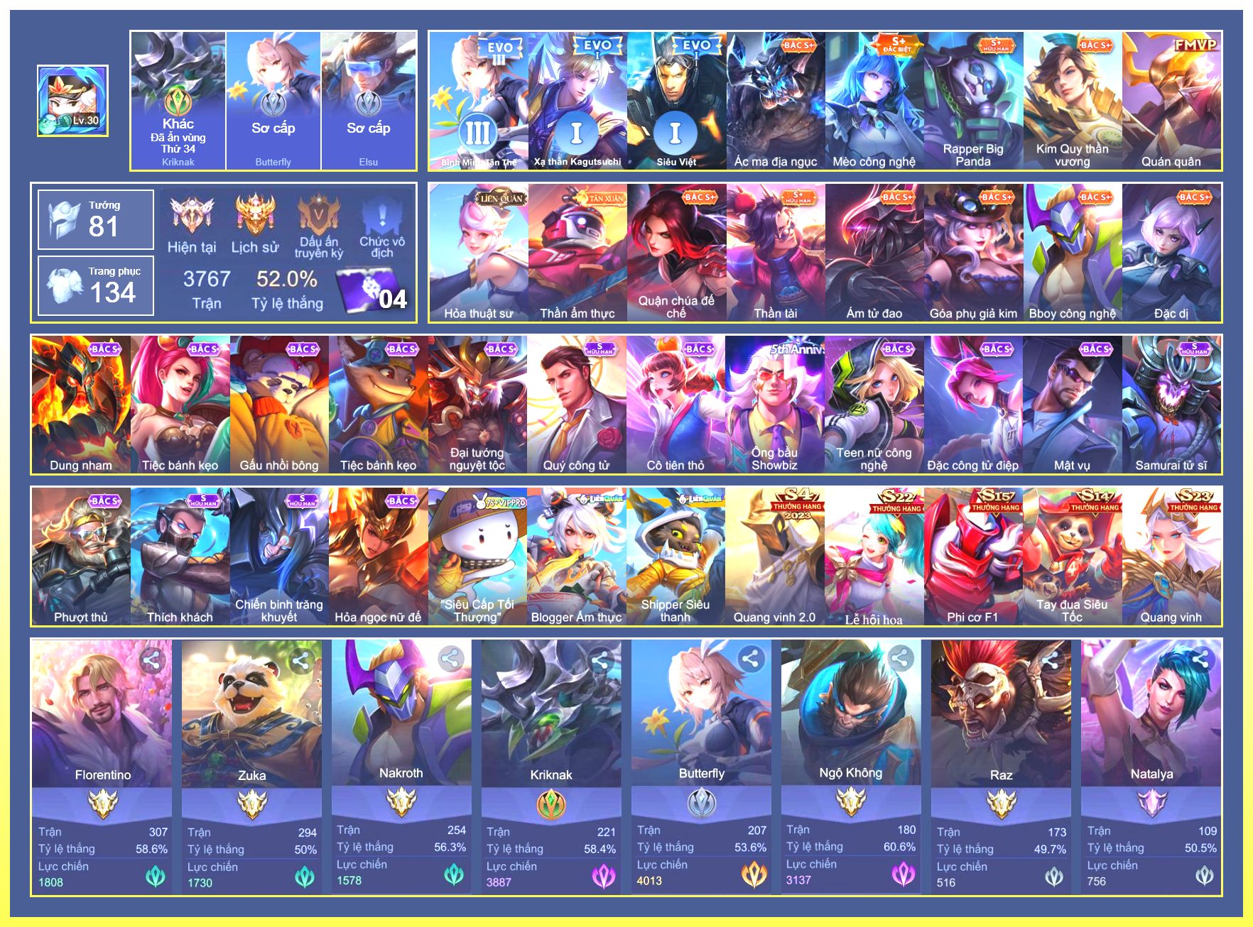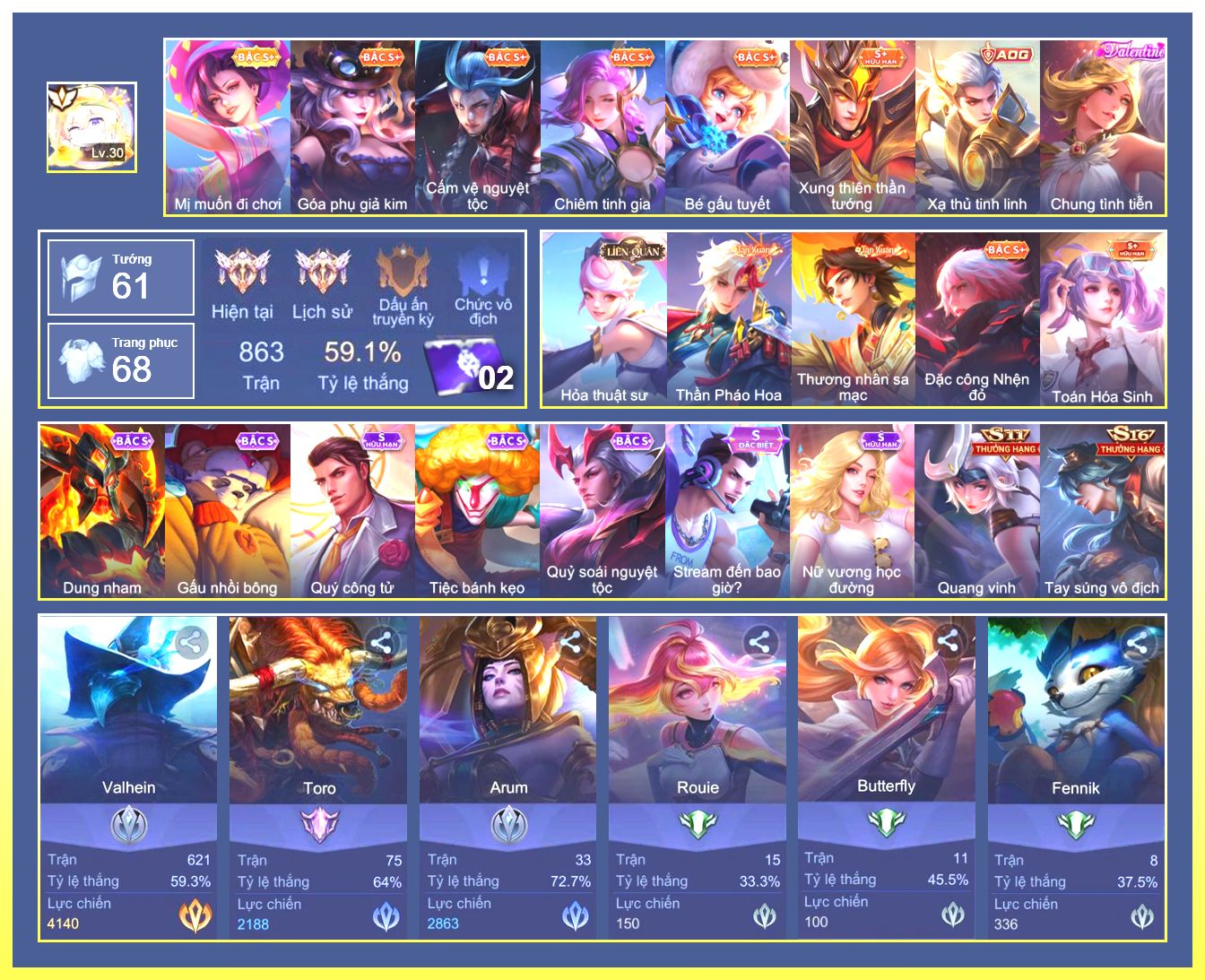 Rất Nhiều Skin Đẹp Vip.Ngọc 90.Lavi...