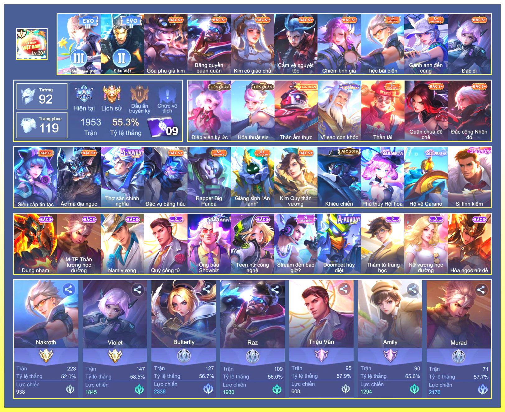 Rất Nhiều Skin Đẹp Vip.Ngọc 90.Lavi...