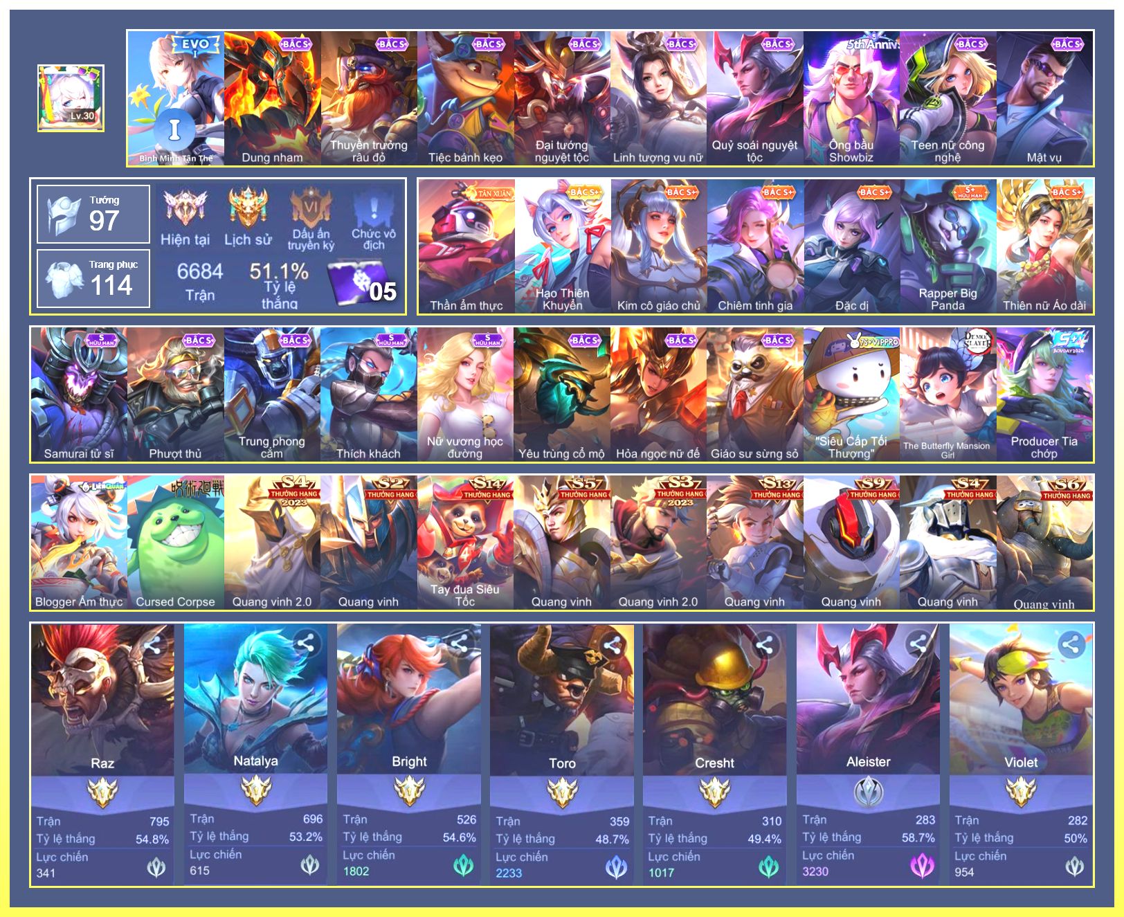 Rất Nhiều Skin Đẹp Vip.Ngọc 90.Dư 7...
