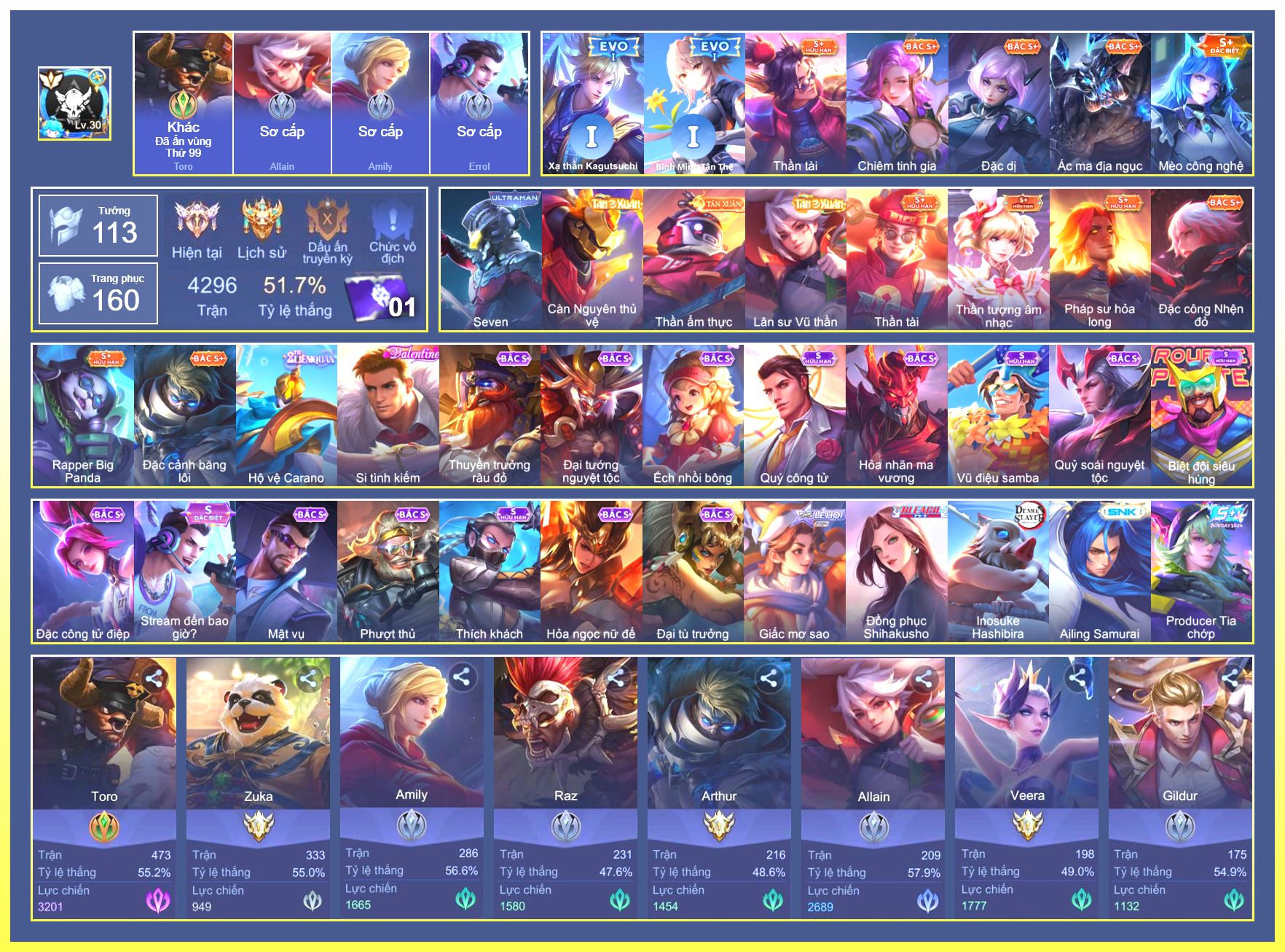 Rất Nhiều Skin Đẹp Vip.Ngọc 90.Dư 9...