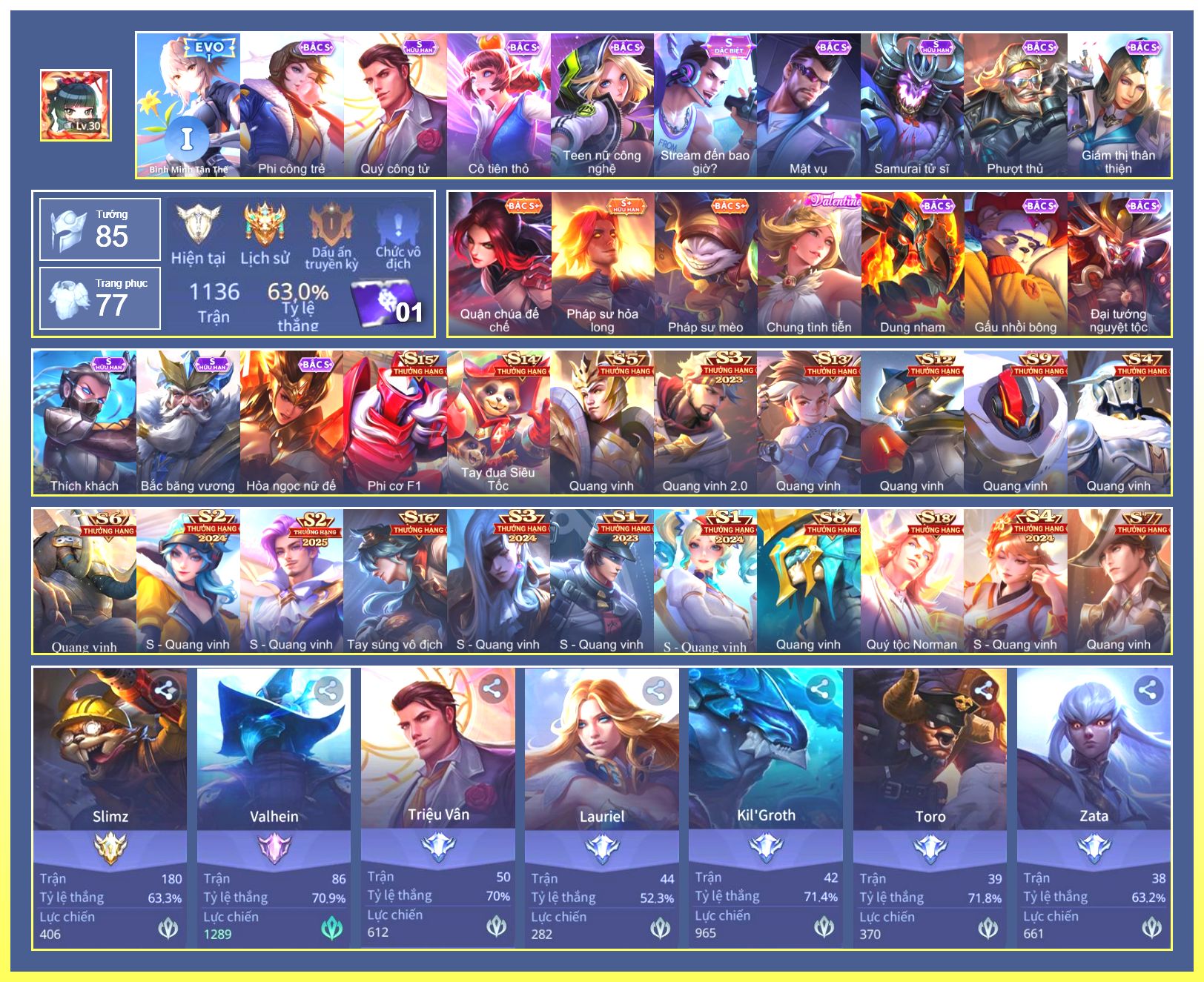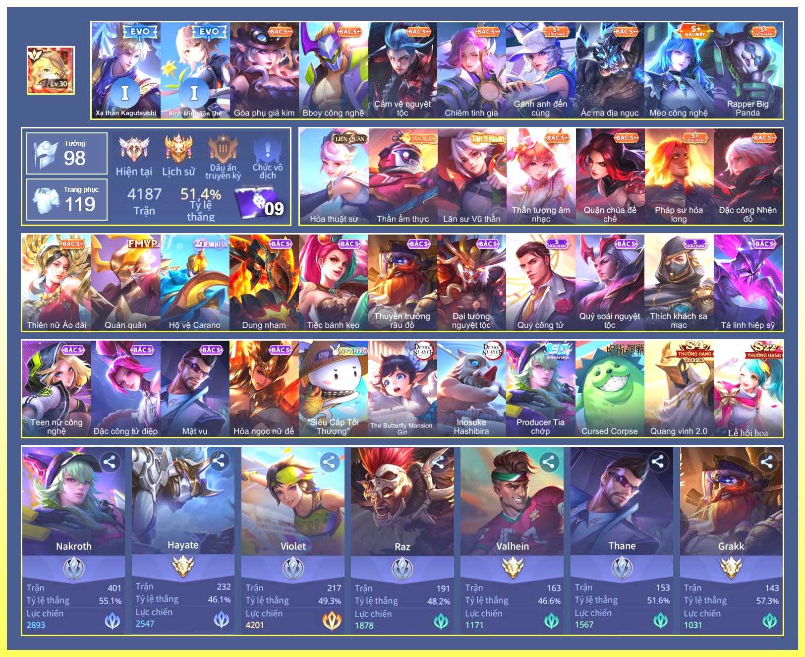 Rất Nhiều Skin Đẹp Vip.Ngọc 90.Dư 5...