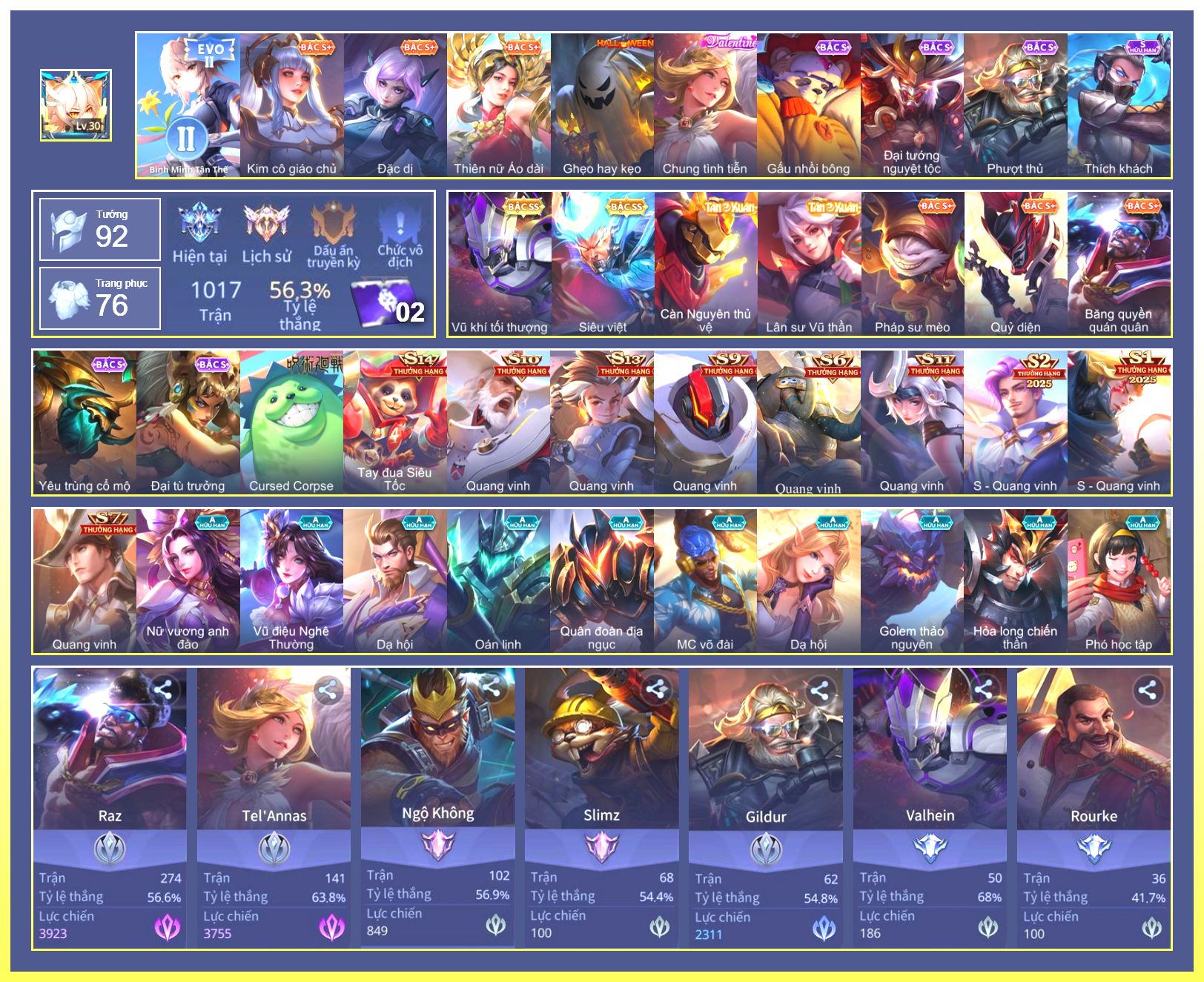 Rất Nhiều Skin Đẹp Vip.Ngọc 90.Dư 3...