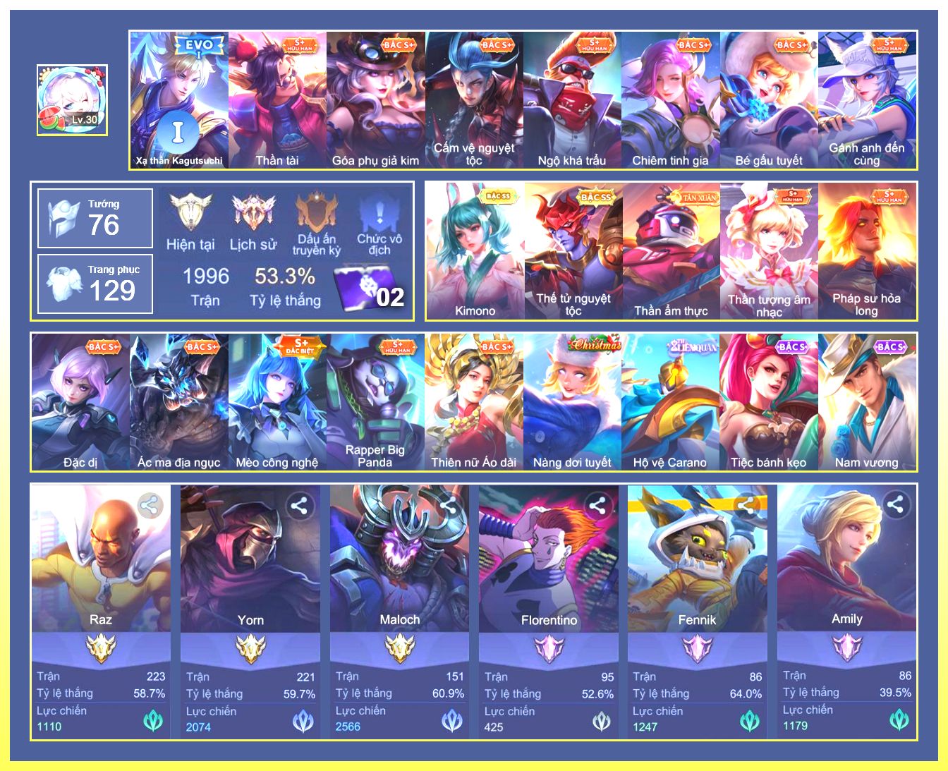 Rất Nhiều Skin Đẹp Vip.Ngọc 90.Dư 3...