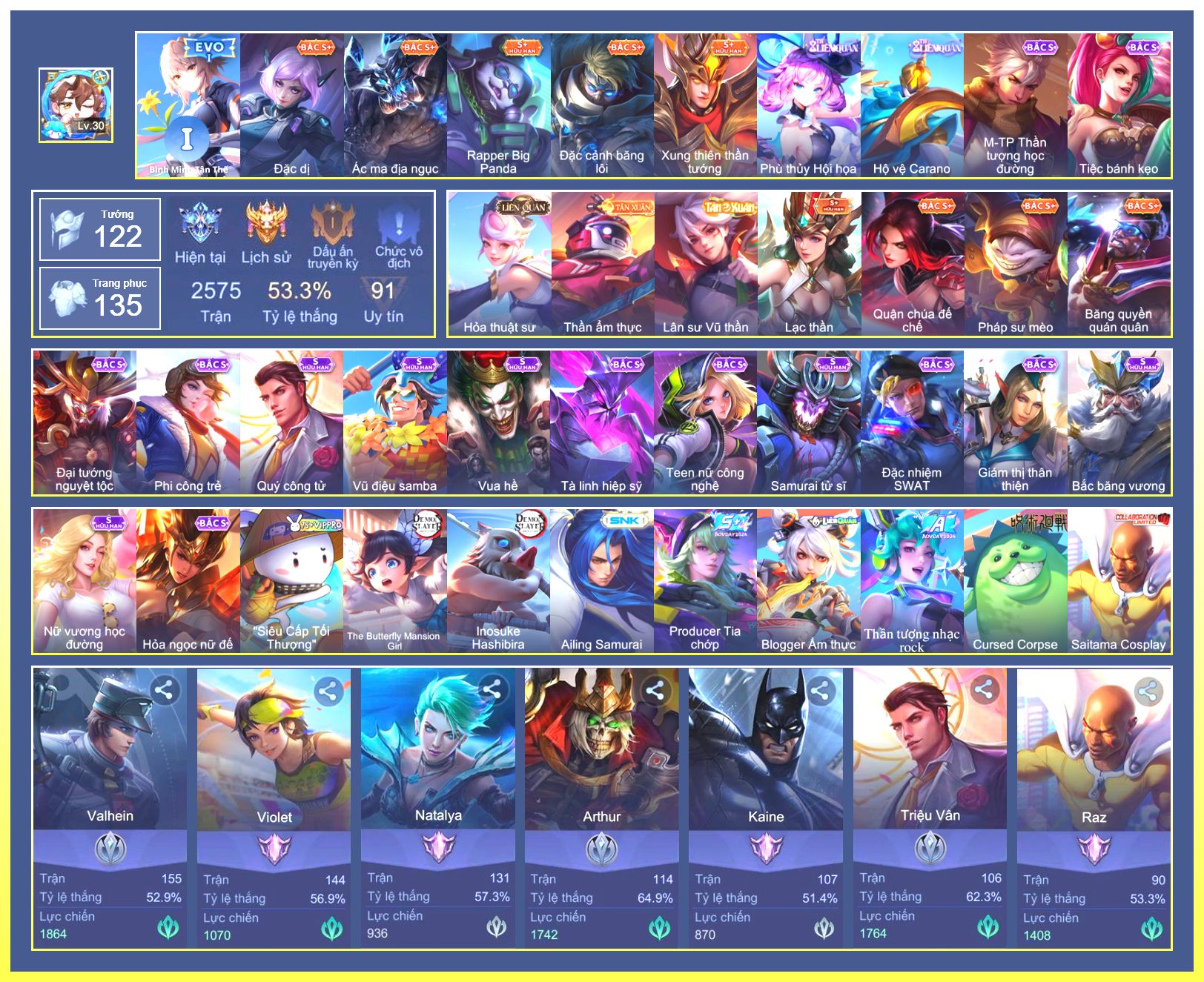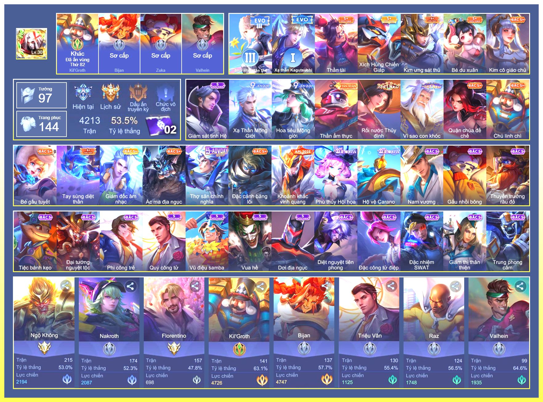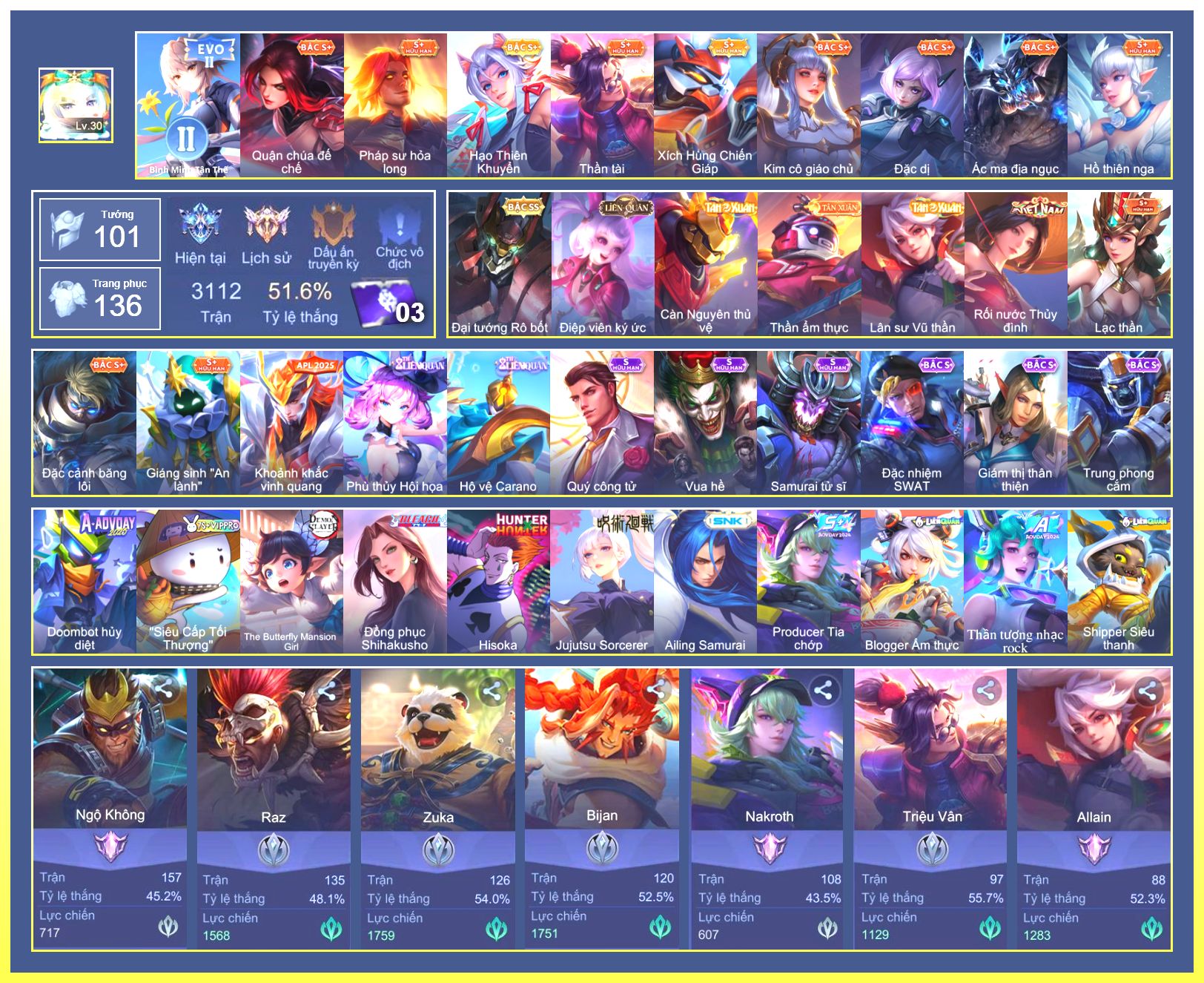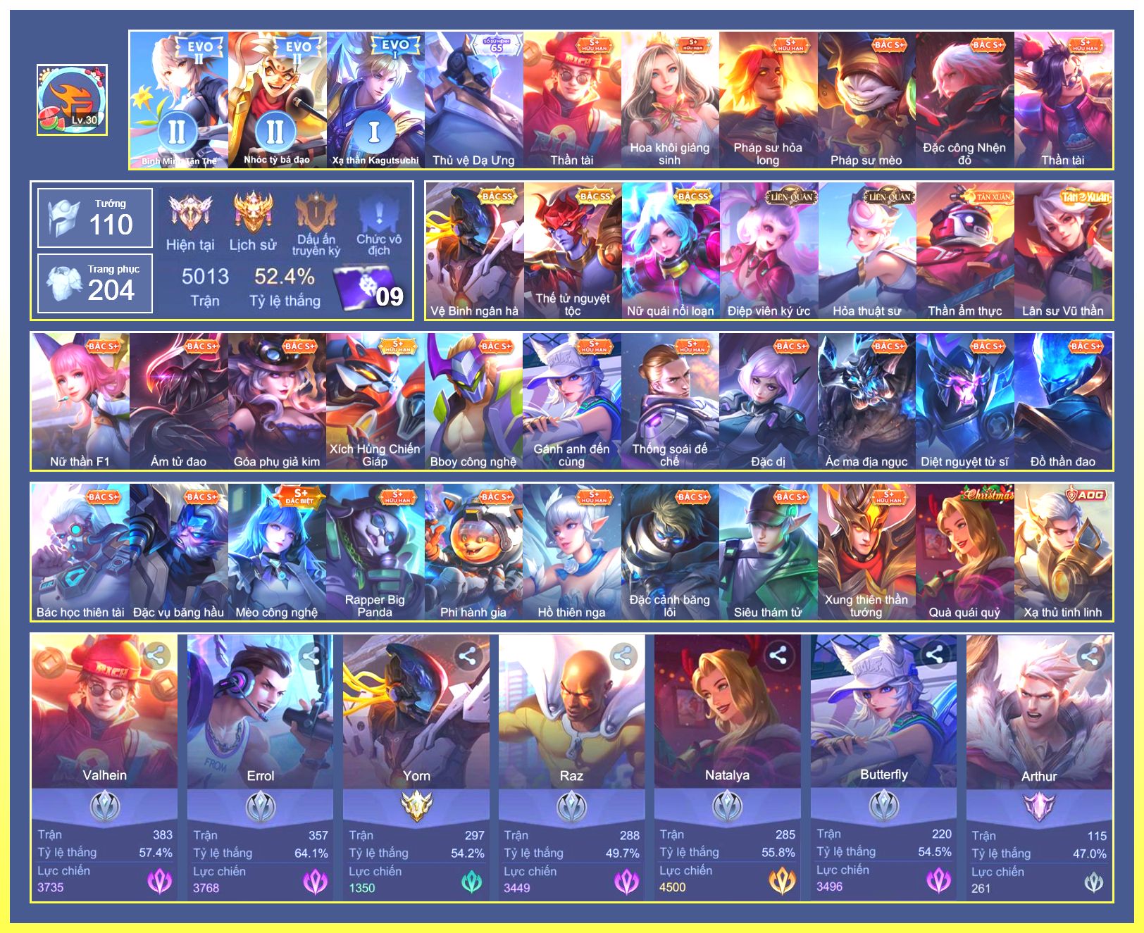 Rất Nhiều Skin Đẹp Vip.Ngọc 90.Dư 6...