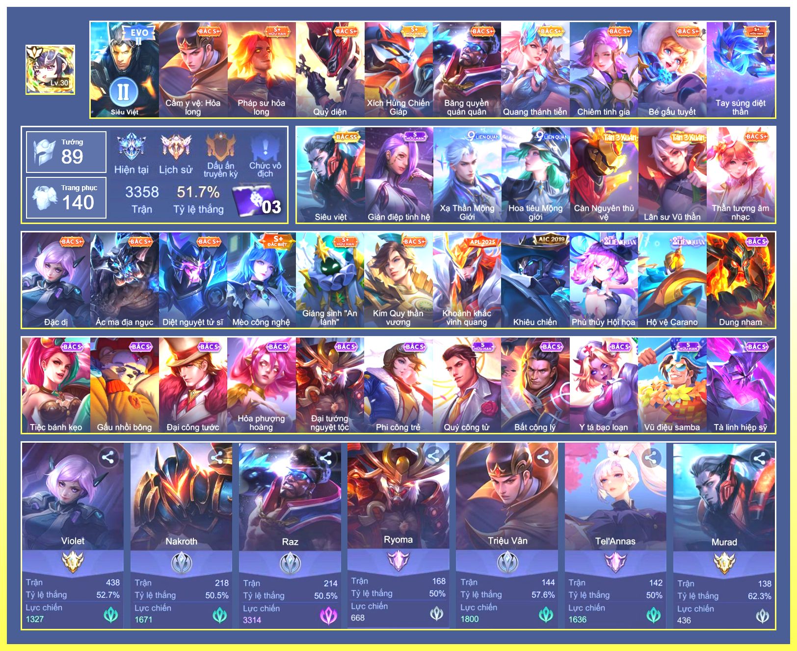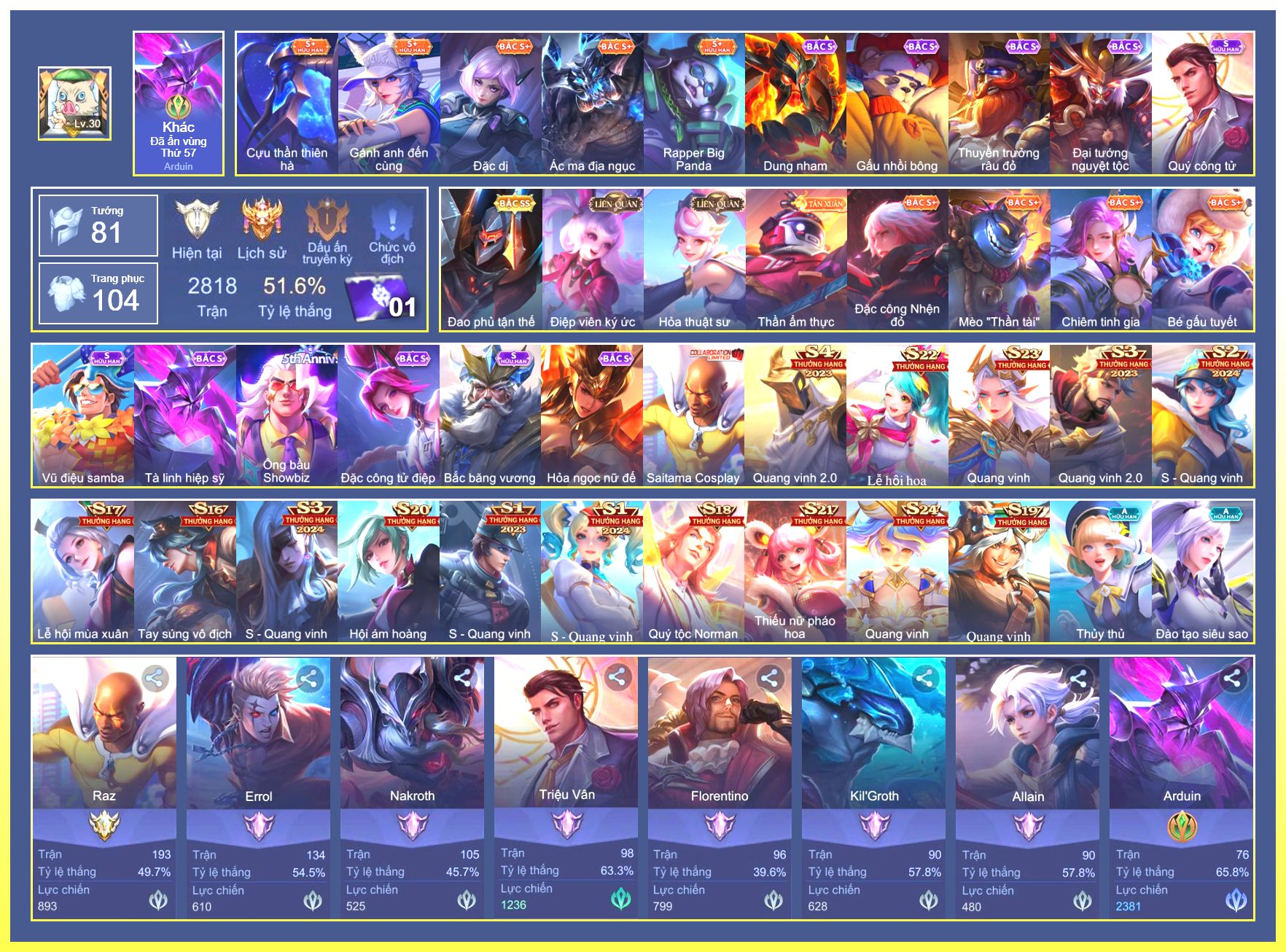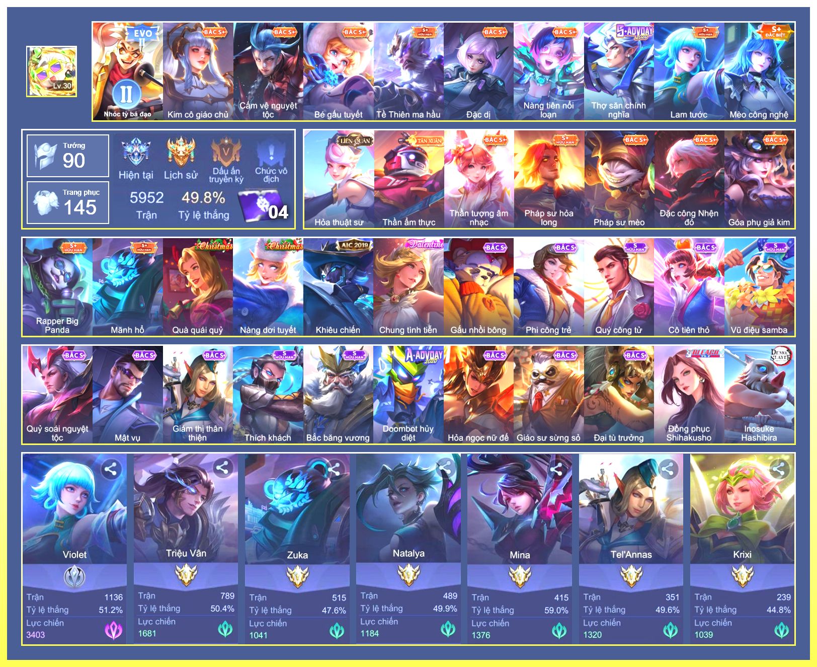 Rất Nhiều Skin Đẹp Vip.Ngọc 90.Dư 6...