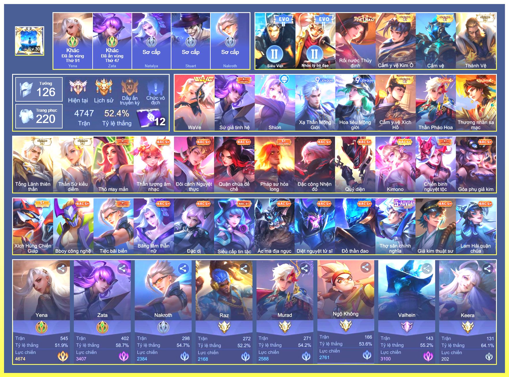 Rất Nhiều Skin Đẹp Vip.Ngọc 90.Dư 4...