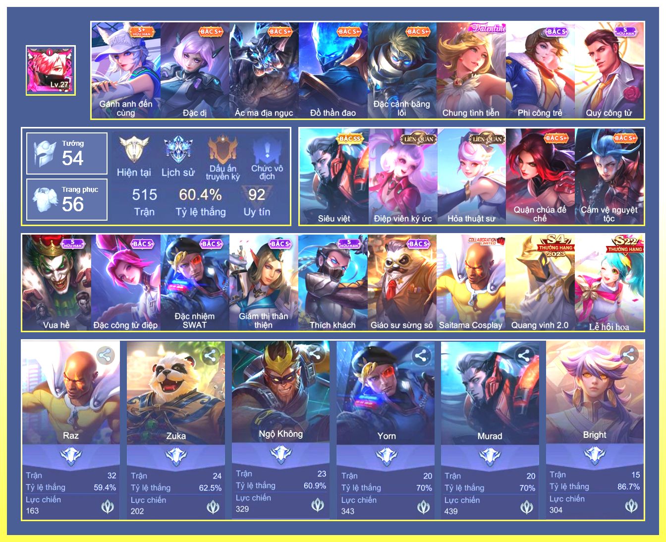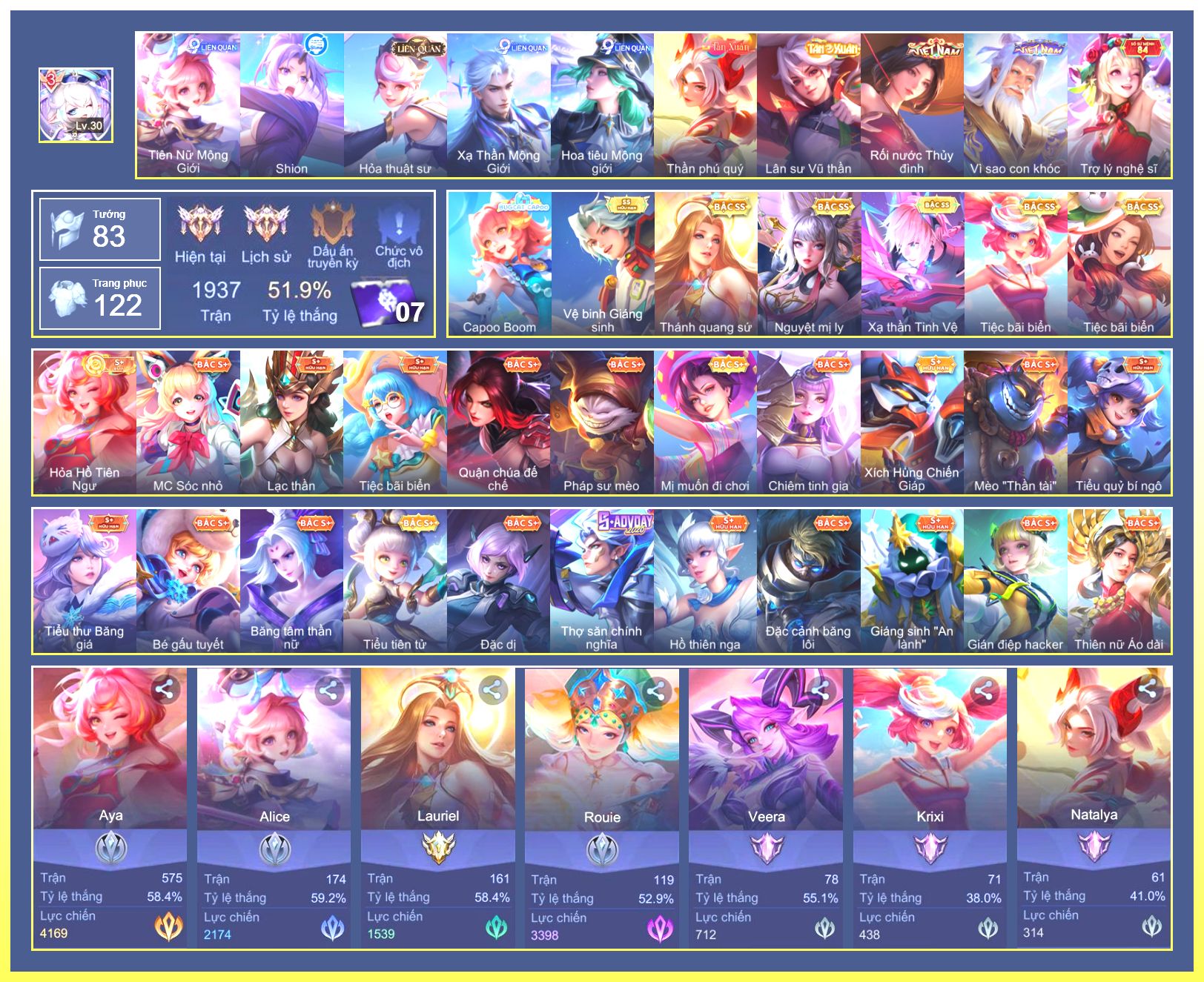 Rất Nhiều Skin Đẹp Vip.Ngọc 90.Dư 3...