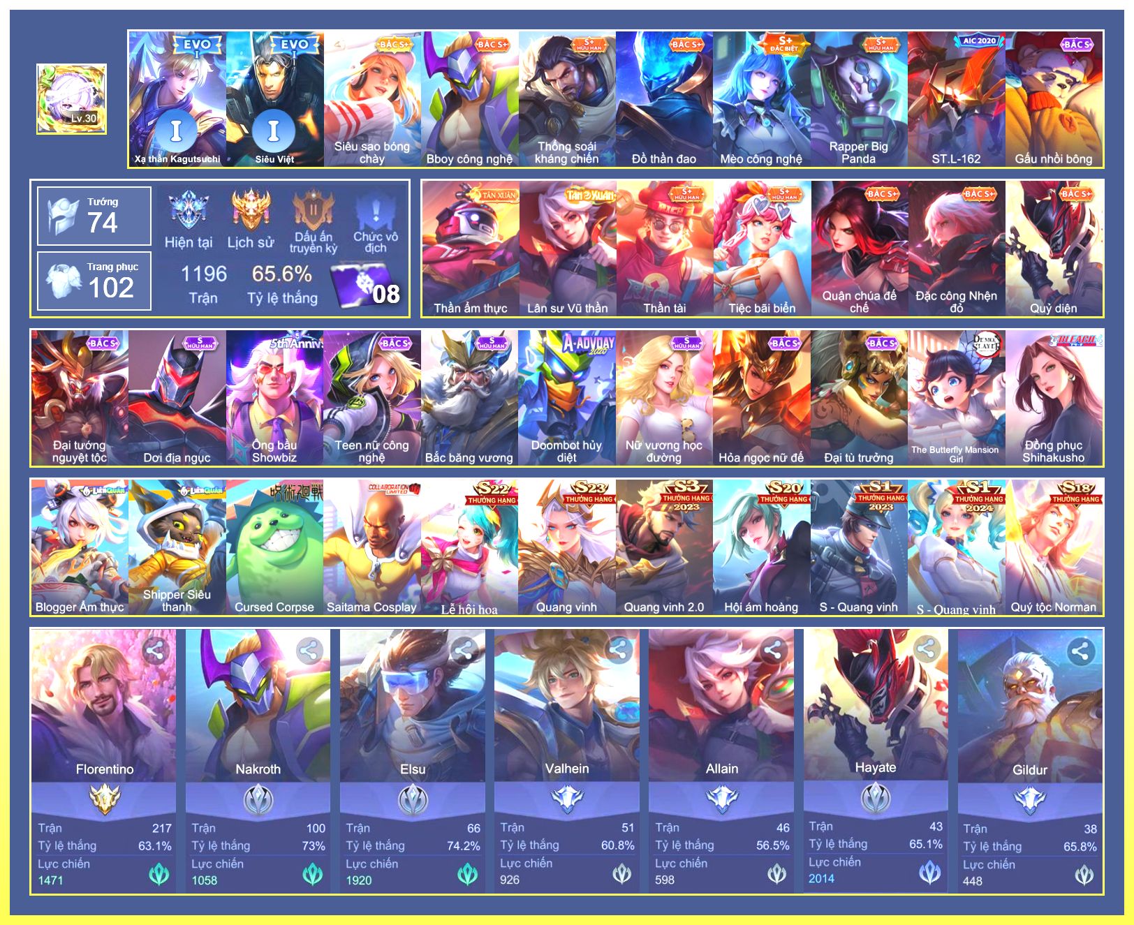 Rất Nhiều Skin Đẹp Vip.Ngọc 90.Dư 6...