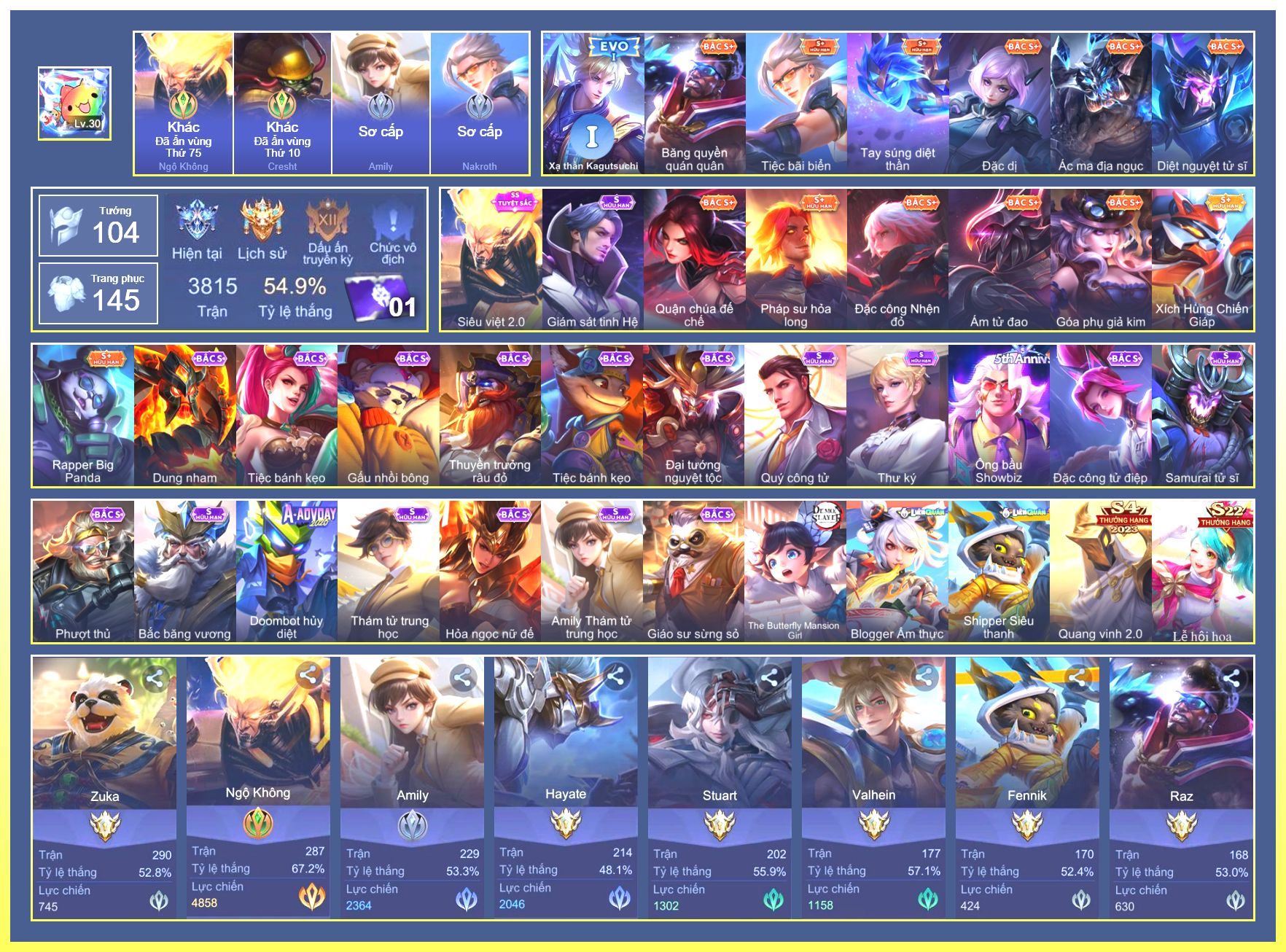 Rất Nhiều Skin Đẹp Vip.Ngọc 90.Dư 3...