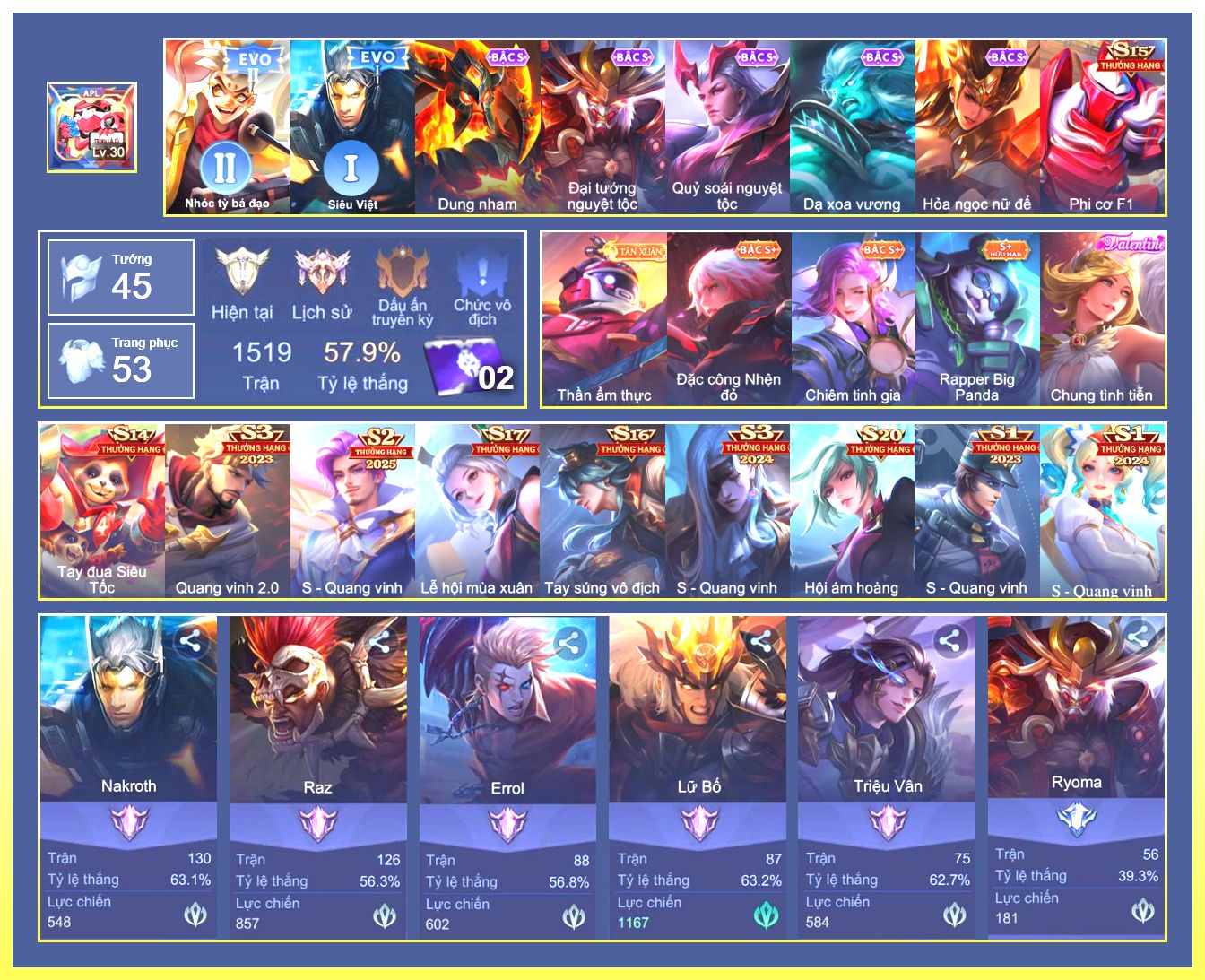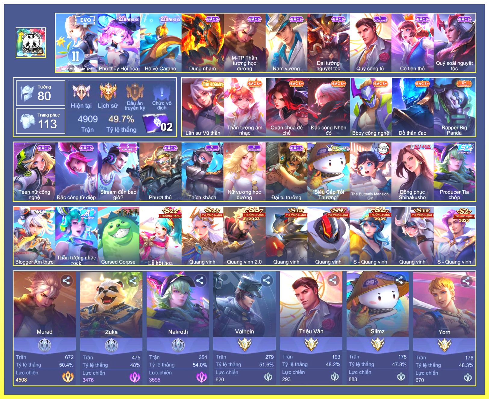 Rất Nhiều Skin Đẹp Vip.Ngọc 90.Dư 6...