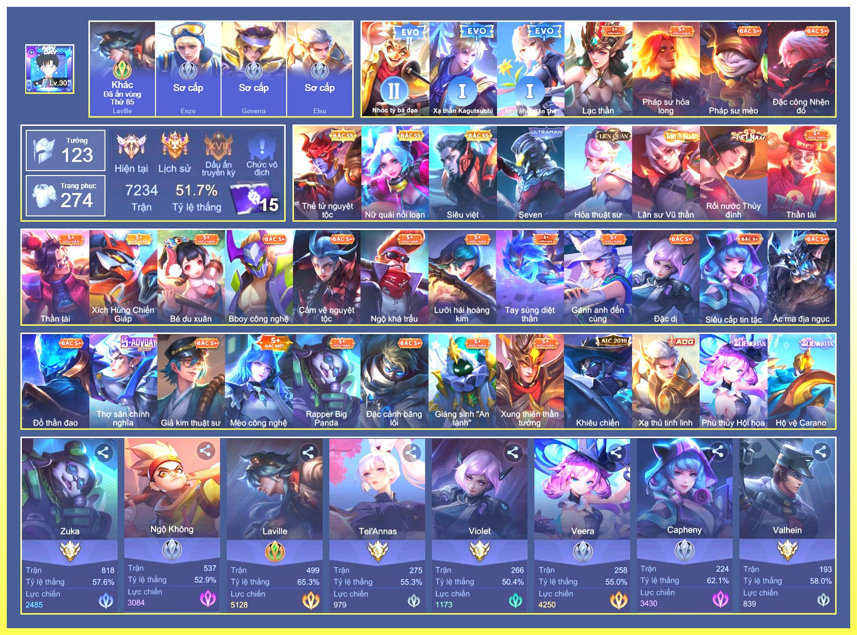 Rất Nhiều Skin Đẹp Vip.Ngọc 90.Điêu...