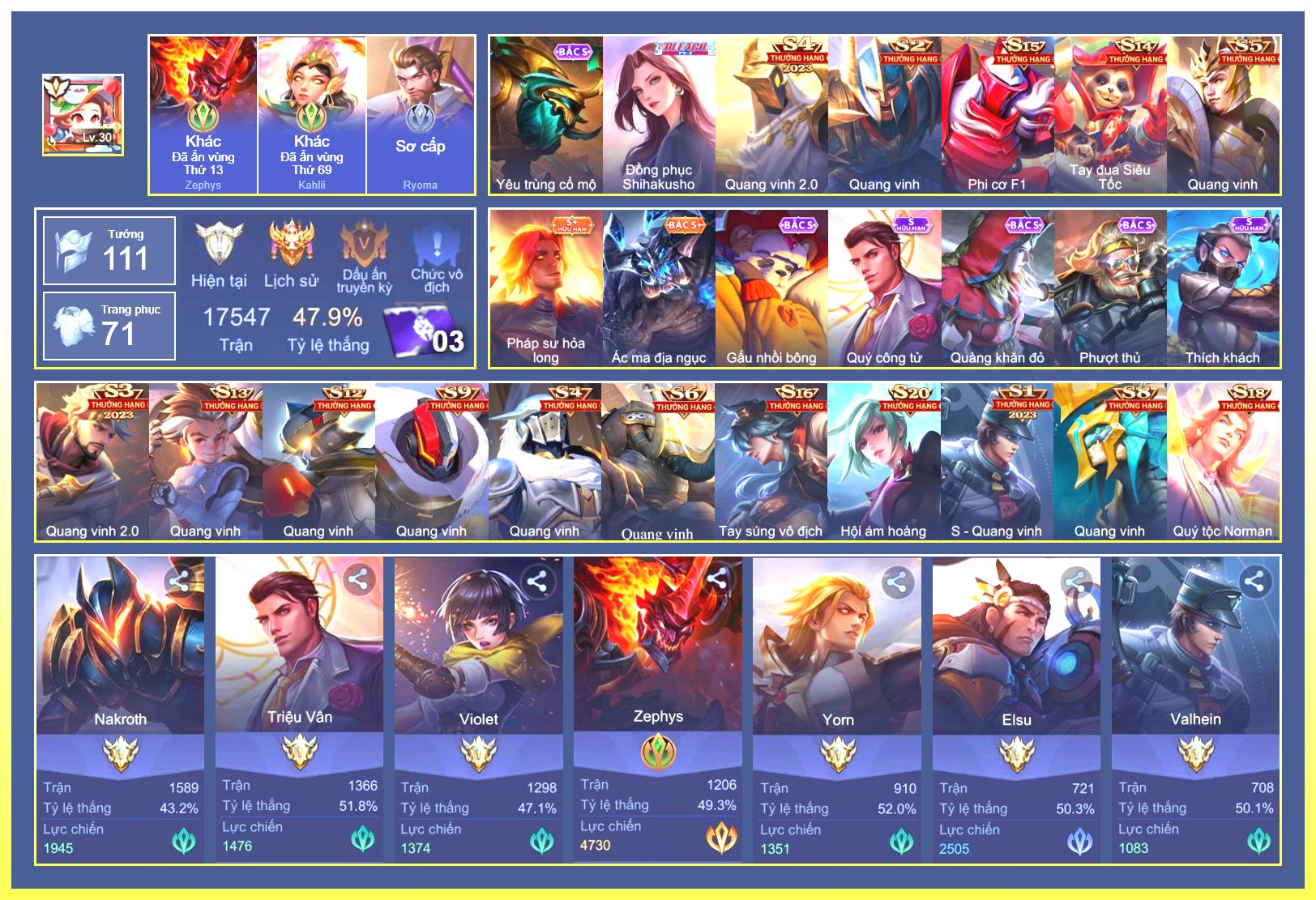 Rất Nhiều Skin Đẹp Vip.Ngọc 90.Dư 4...