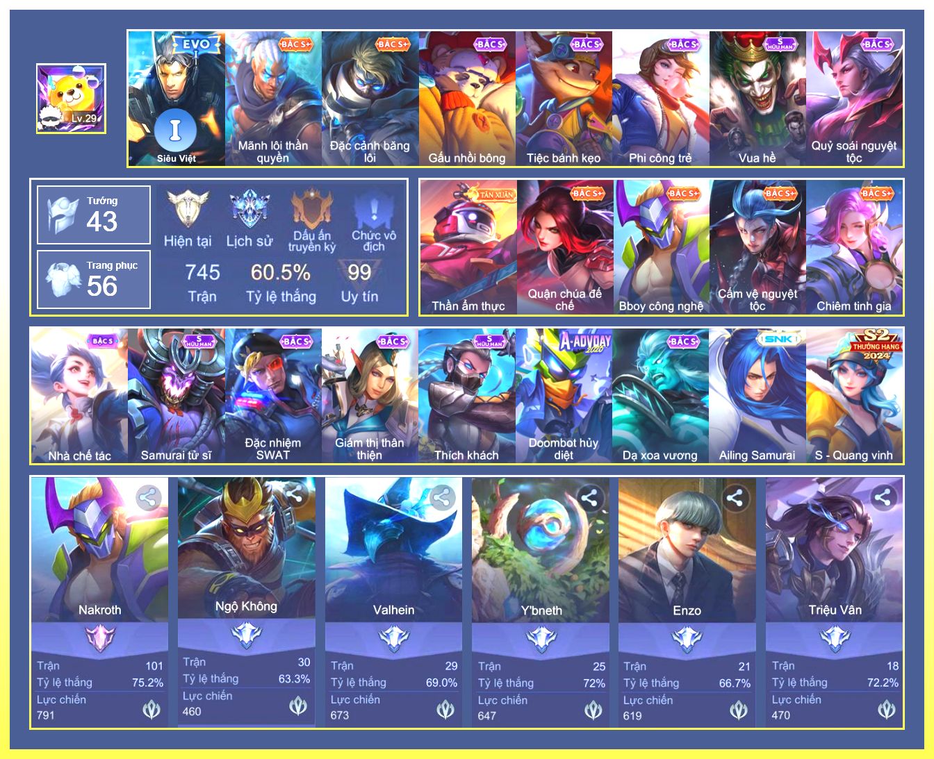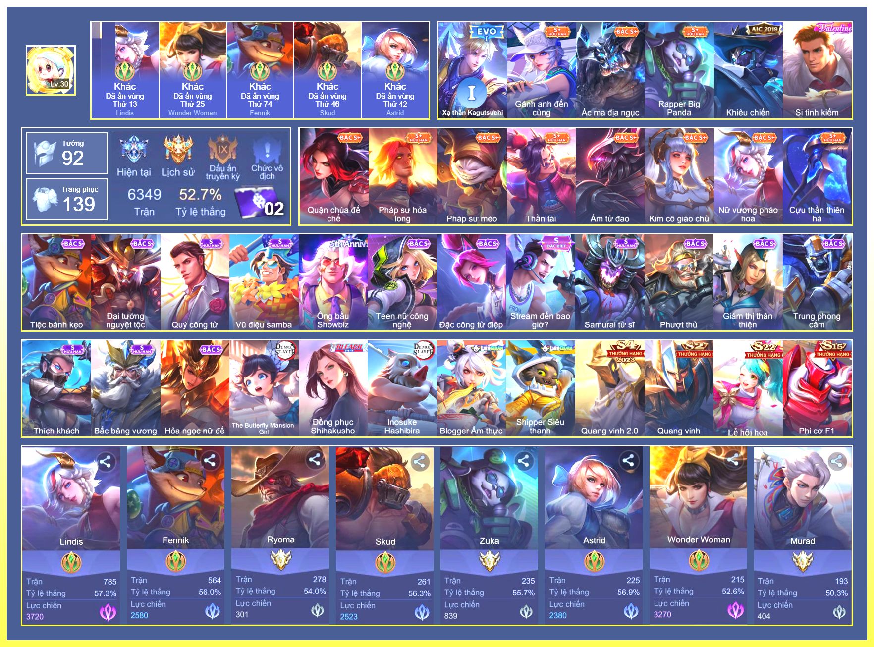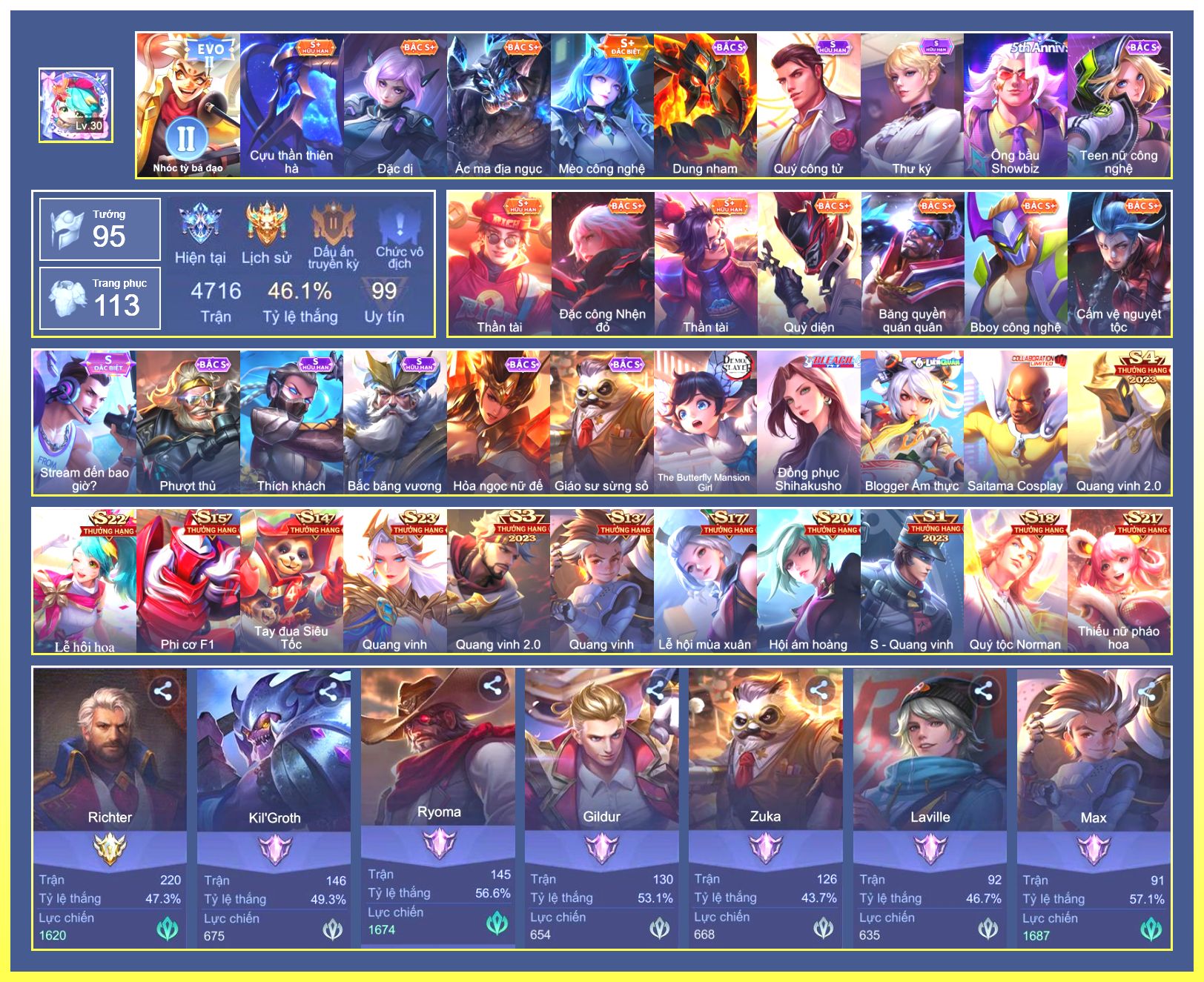 Rất Nhiều Skin Đẹp Vip.Ngọc 90.Dư 5...