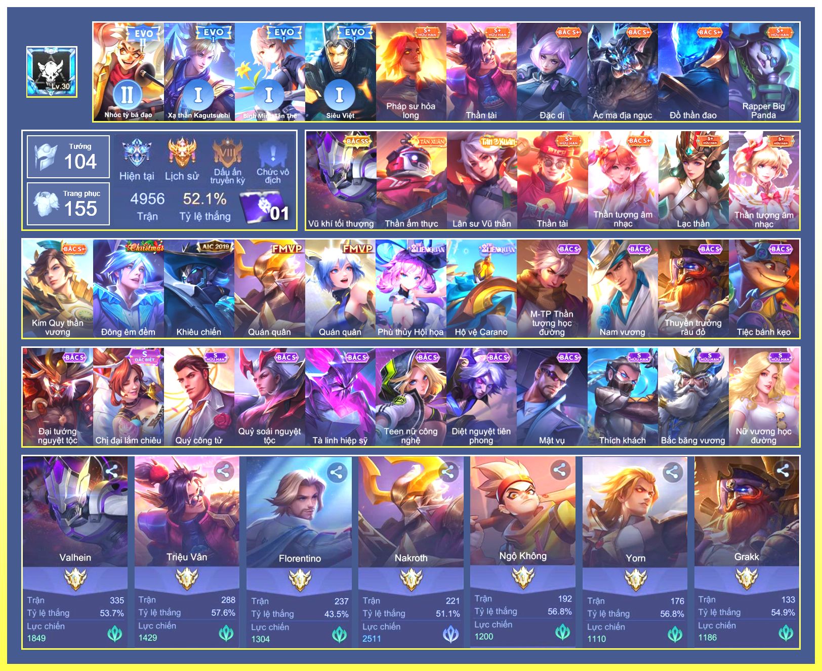 Rất Nhiều Skin Đẹp Vip.Ngọc 90.Dư 4...
