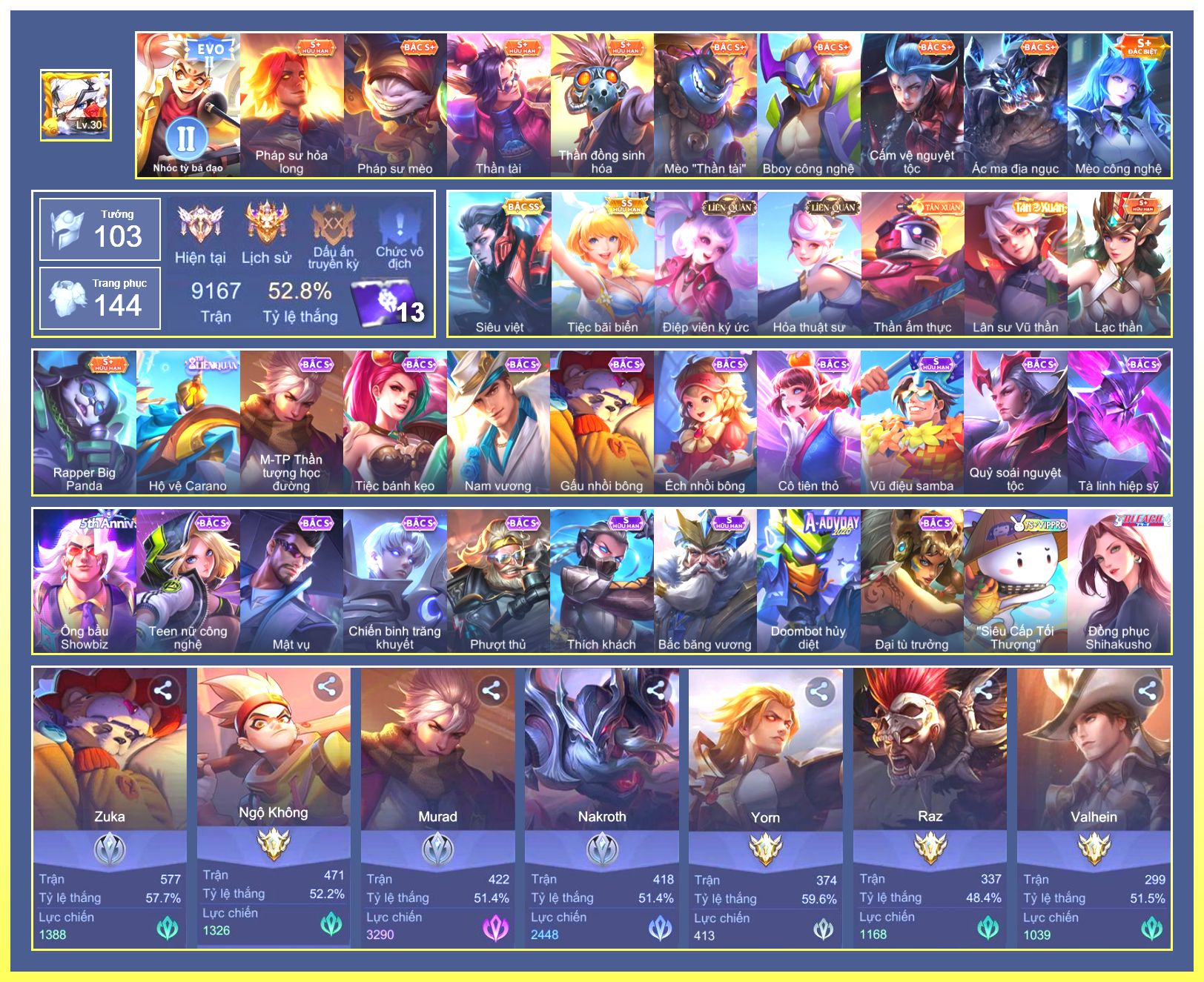 Rất Nhiều Skin Đẹp Vip.Ngọc 90.Dư 9...