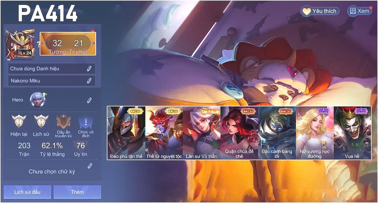 Rất Nhiều Skin Đẹp VIP.Ngọc 90.Rất...